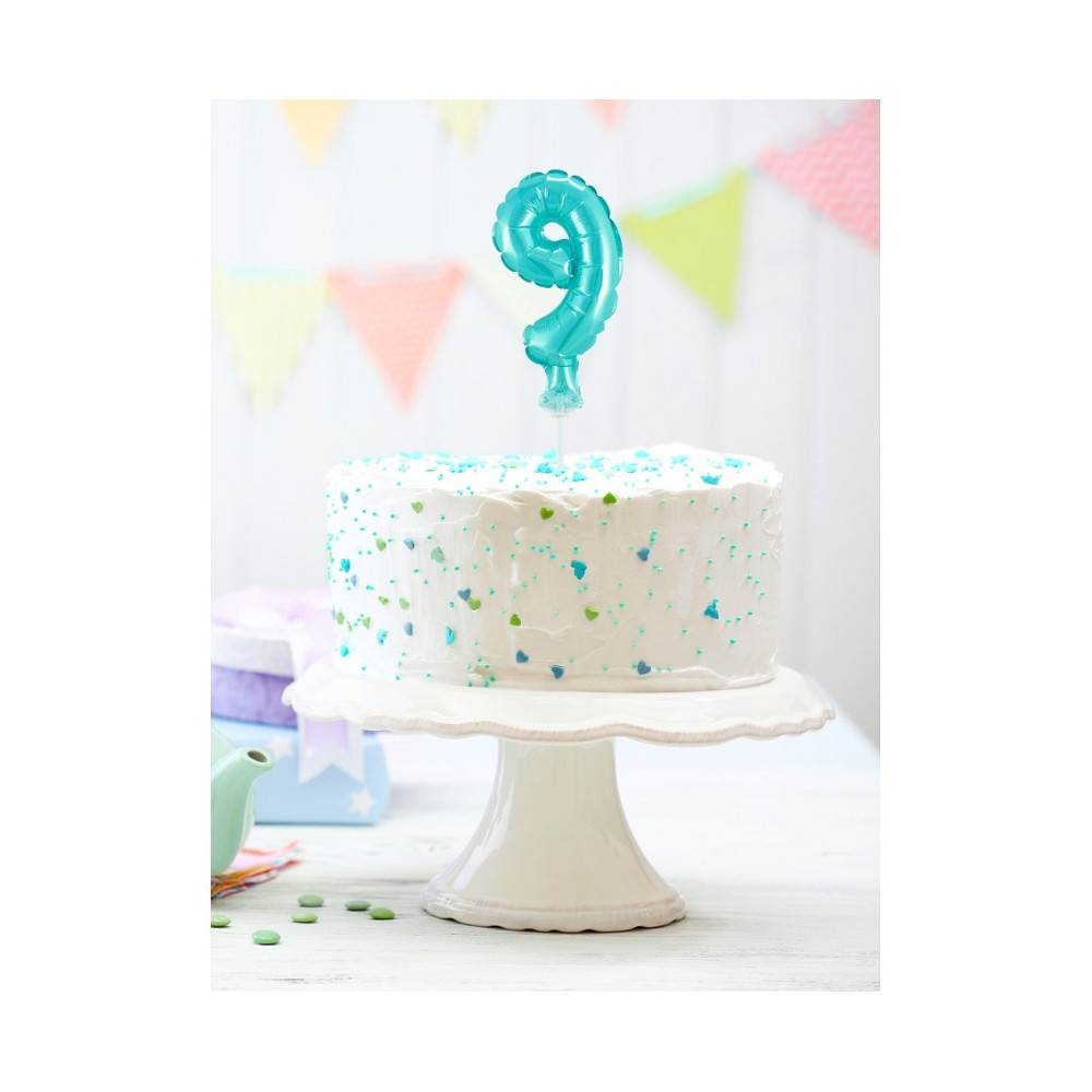 Ozdoba na narozeninový dort v podobě malého nafukovacího čísla. Fóliový balónek na tyčce ve...