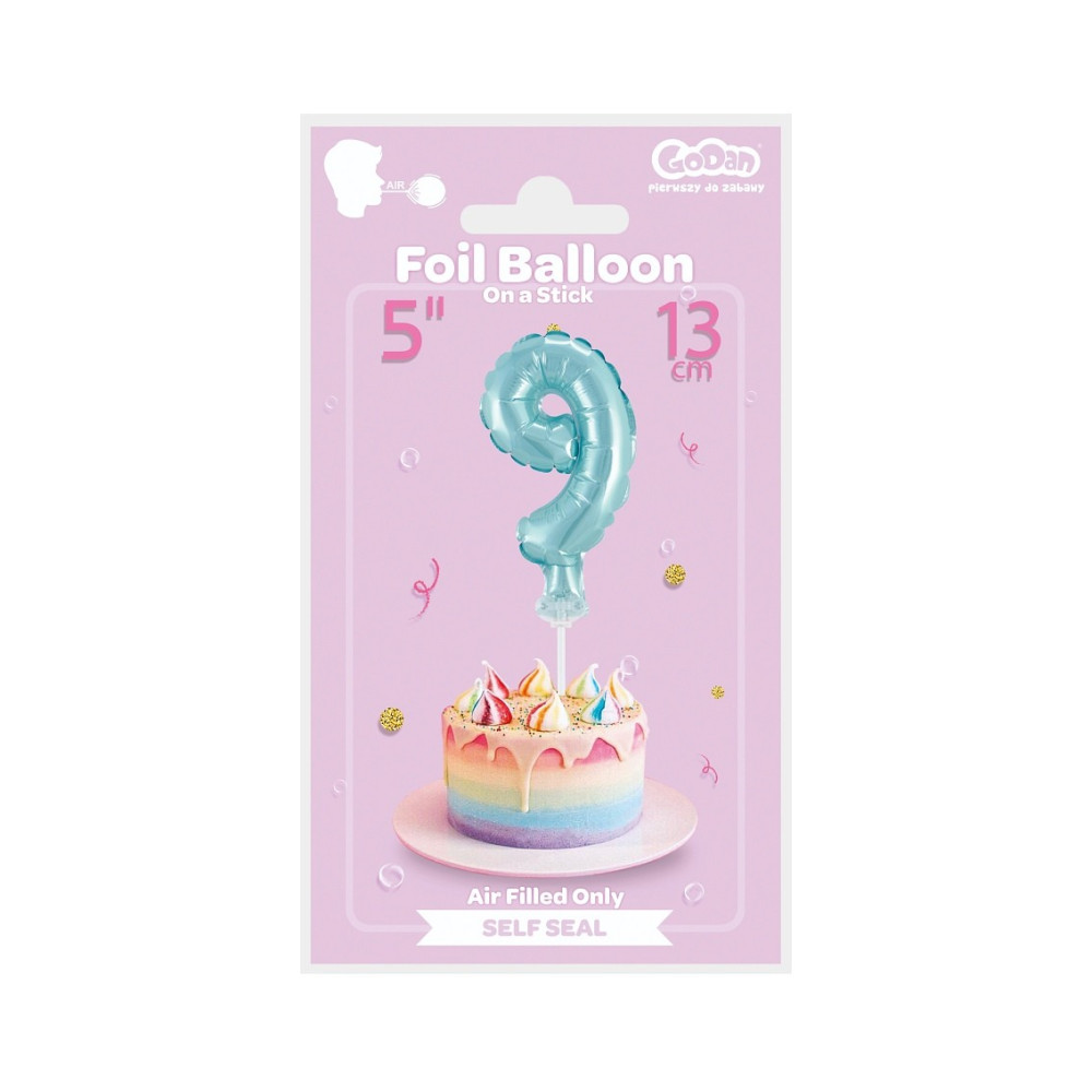 Fóliový balónek na tyčce ve tvaru čísla, kterým můžete nahradit tradiční svíčku na dort.