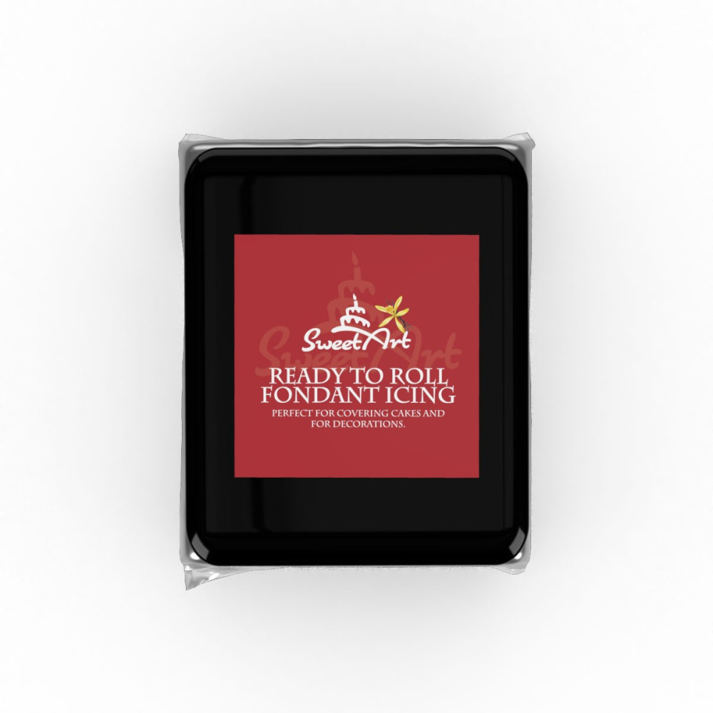 Černá cukrová hmota s vanilkovou příchutí na potahování dortů a výrobu cukrových figurek.