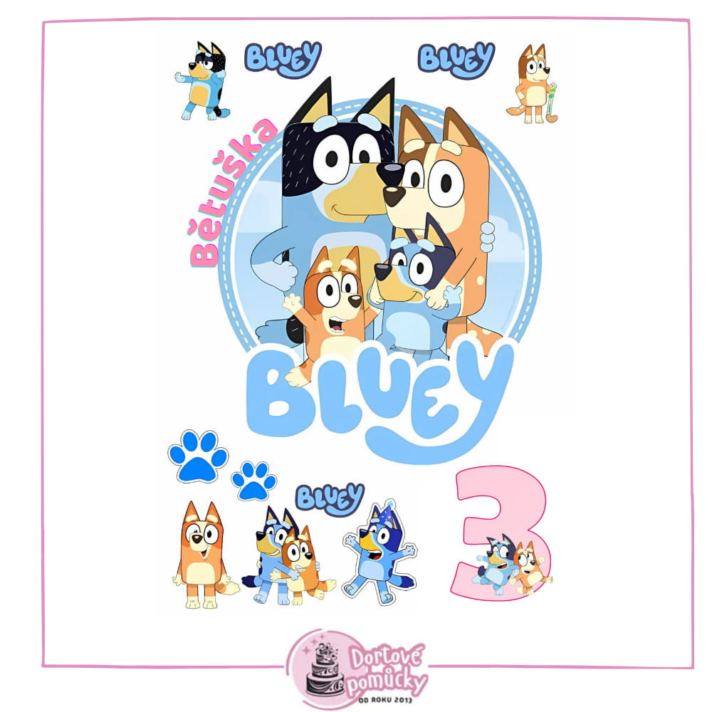 • Motiv: obrázek z pohádky Bluey – přesně jak vidíte na náhledu.