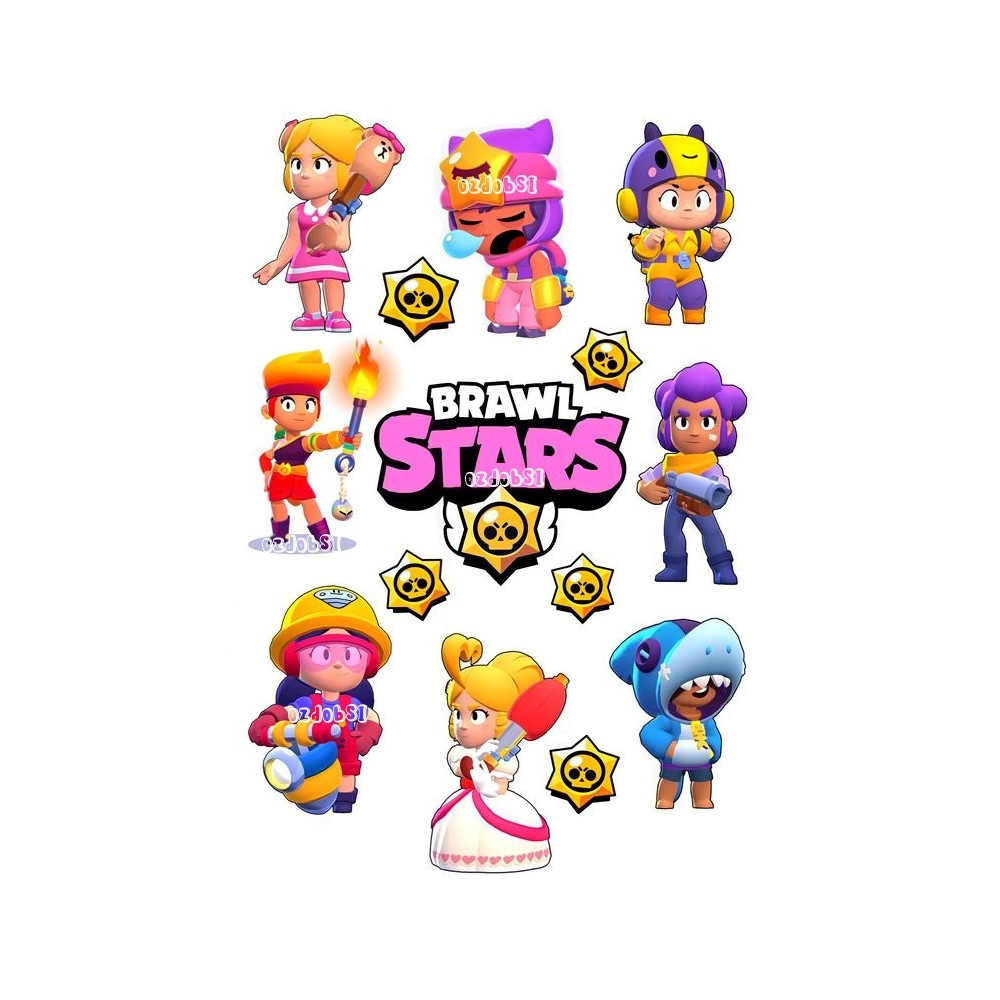 Jedlý papír BRAWL STARS s motivy hlavních hrdinů.