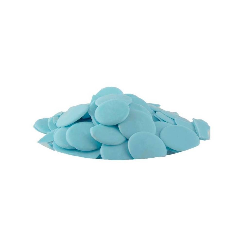 Tuková poleva světle modré barvy v peckách.