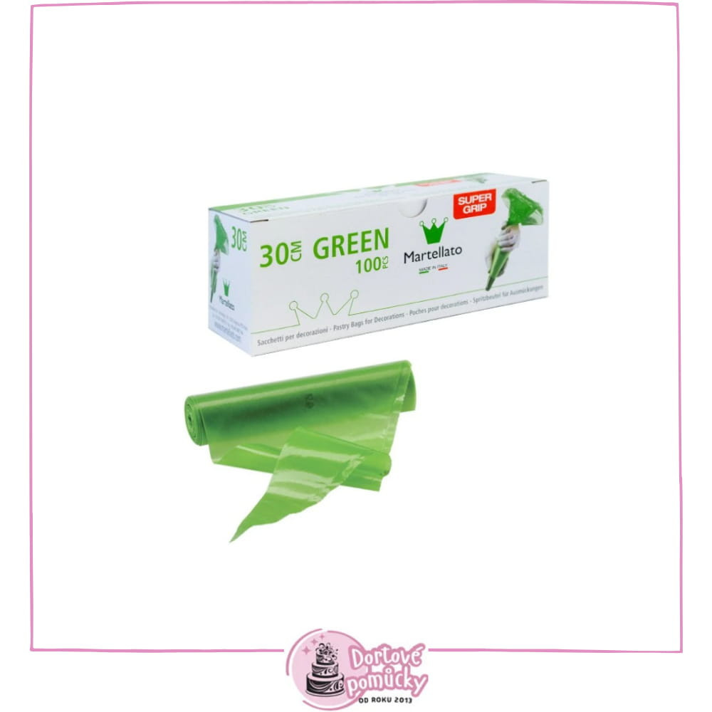 Martellato Green Poche Grip Effect (30 cm) je jednorázový profesionální cukrářský sáček vyrobený z vícevrstvého potravinářského polyethylenu.