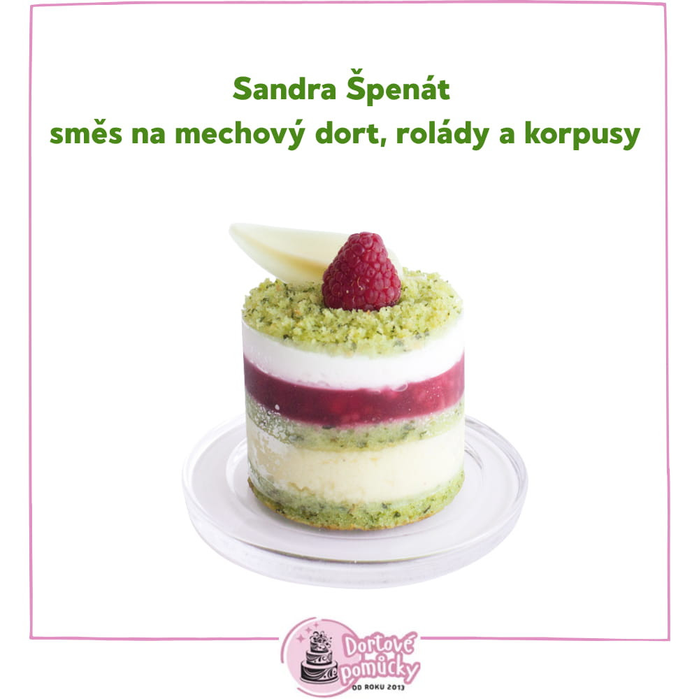 Sandra Špenát je specializovaná směs pro výrobu litých špenátových těst, ideální pro dortové korpusy, roládové pláty, cupcakes nebo mechové dorty.