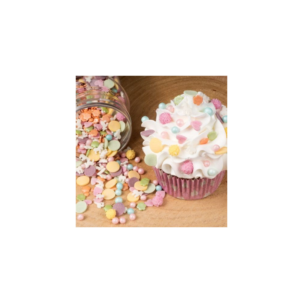 Cukrové zdobení potahované pastelovými a metalickými barvami ideální v cukrářské výrobě na zdobení dortů, zákusků a dezertů.