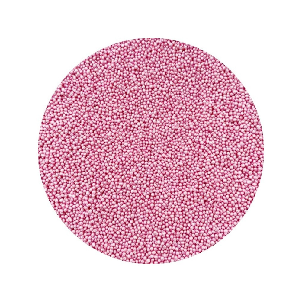 Perleťově růžový cukrový máček ke zdobení cukrářských výrobků.