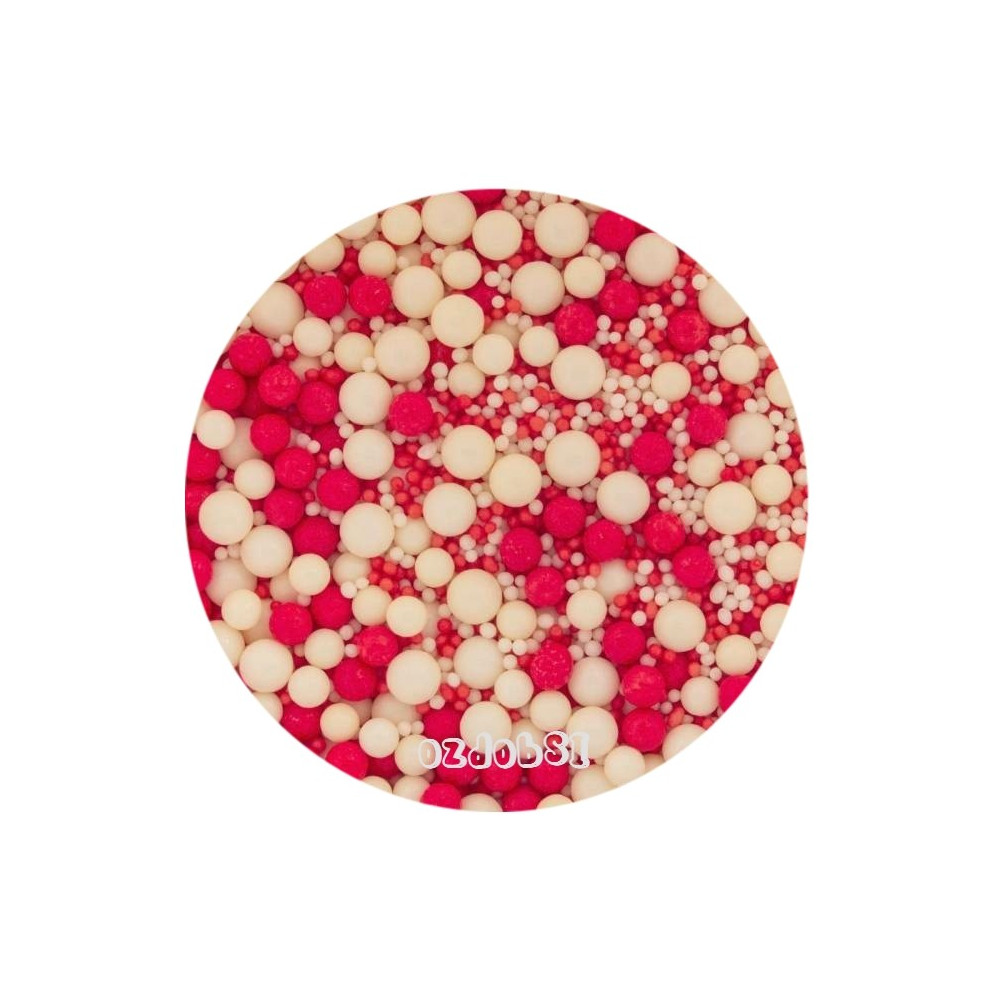 Obsahuje máček a perličky v pastelových barvách Bílá, červená a růžová.