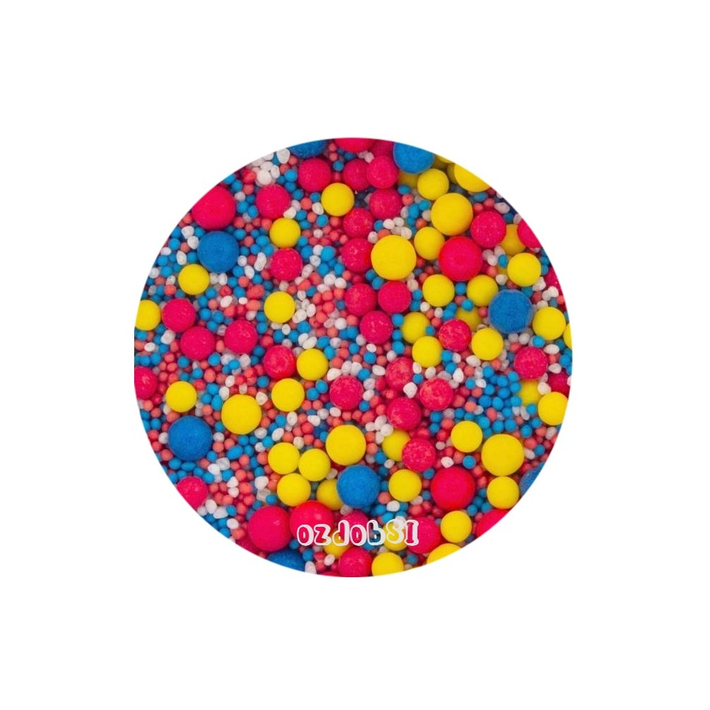Cukrové zdobení v moderních pastelových barvách. Obsahuje máček a perličky v pastelových barvách...