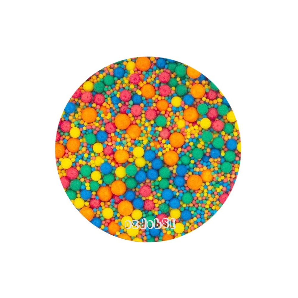 Obsahuje máček a perličky v pastelových barvách modrá, žlutá, růžová a zelená.