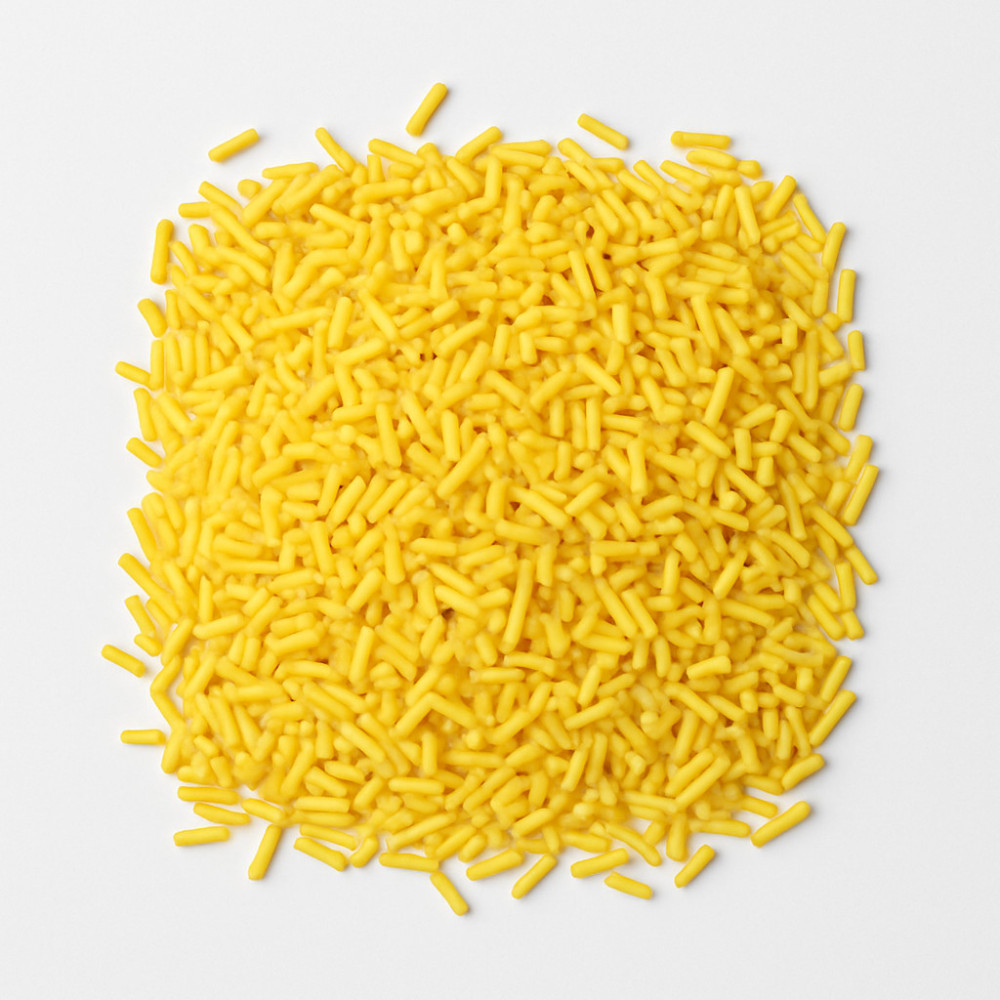 Slunečný cukrový posyp žluté tyčinky, který rozzáří dezerty zářivě žlutým odstínem.