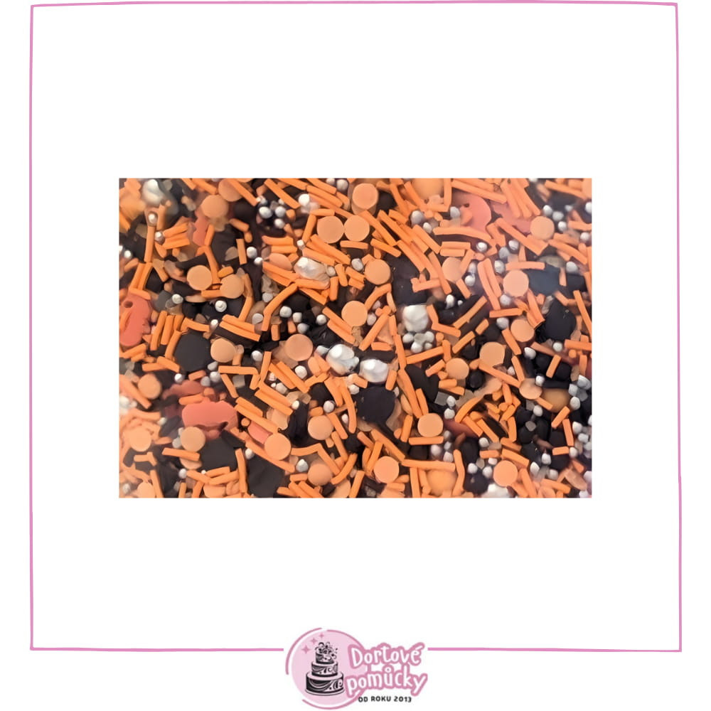 Objevte sladké Halloweenské zdobení – originální cukrový posyp v černo-oranžové kombinaci.