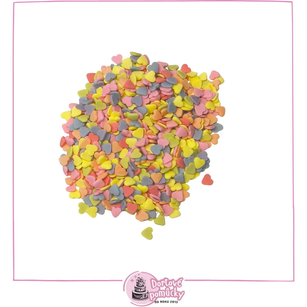 Pastelová cukrová srdíčka pro romantické i veselé zdobení dortů a dezertů.