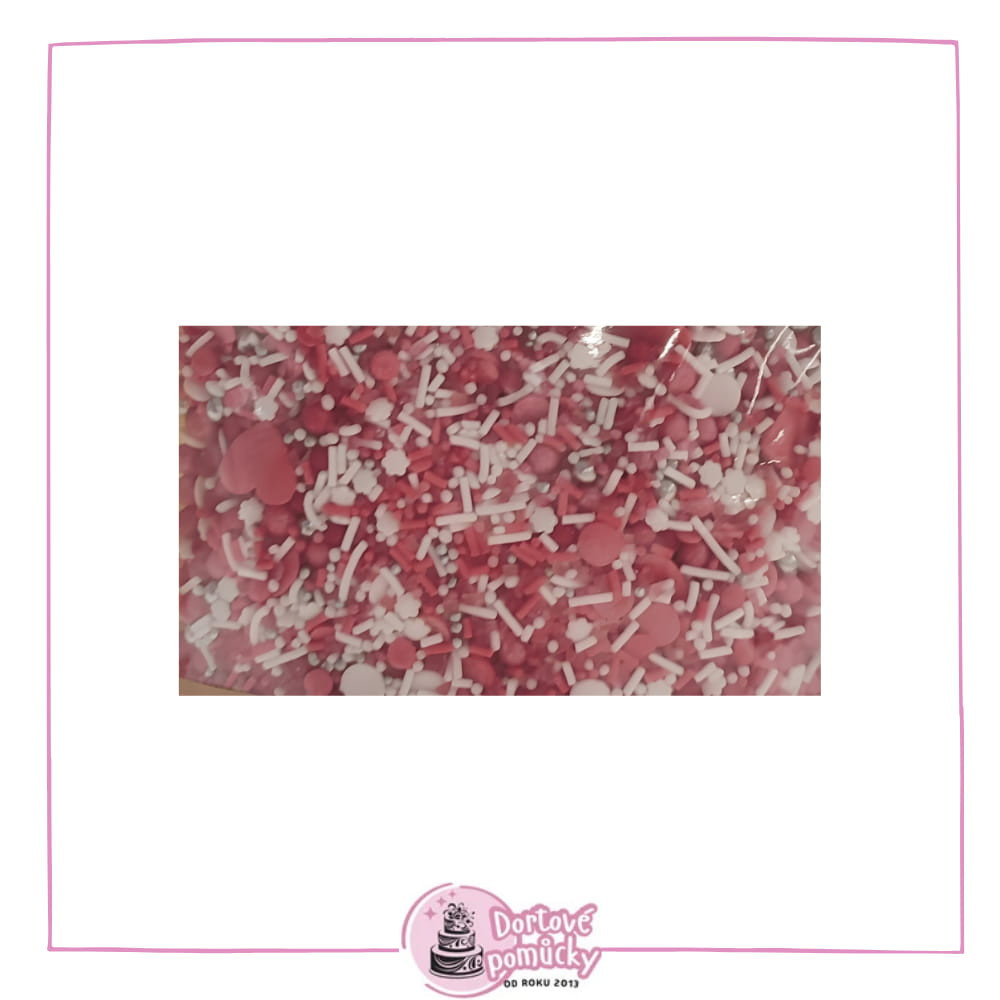 Cukrový posyp valentýnský mix v růžovo-bílé barvě dodá vašim dezertům romantický nádech. Ideální na cupcakes, dorty, sušenky i slavnostní mini dezerty.
