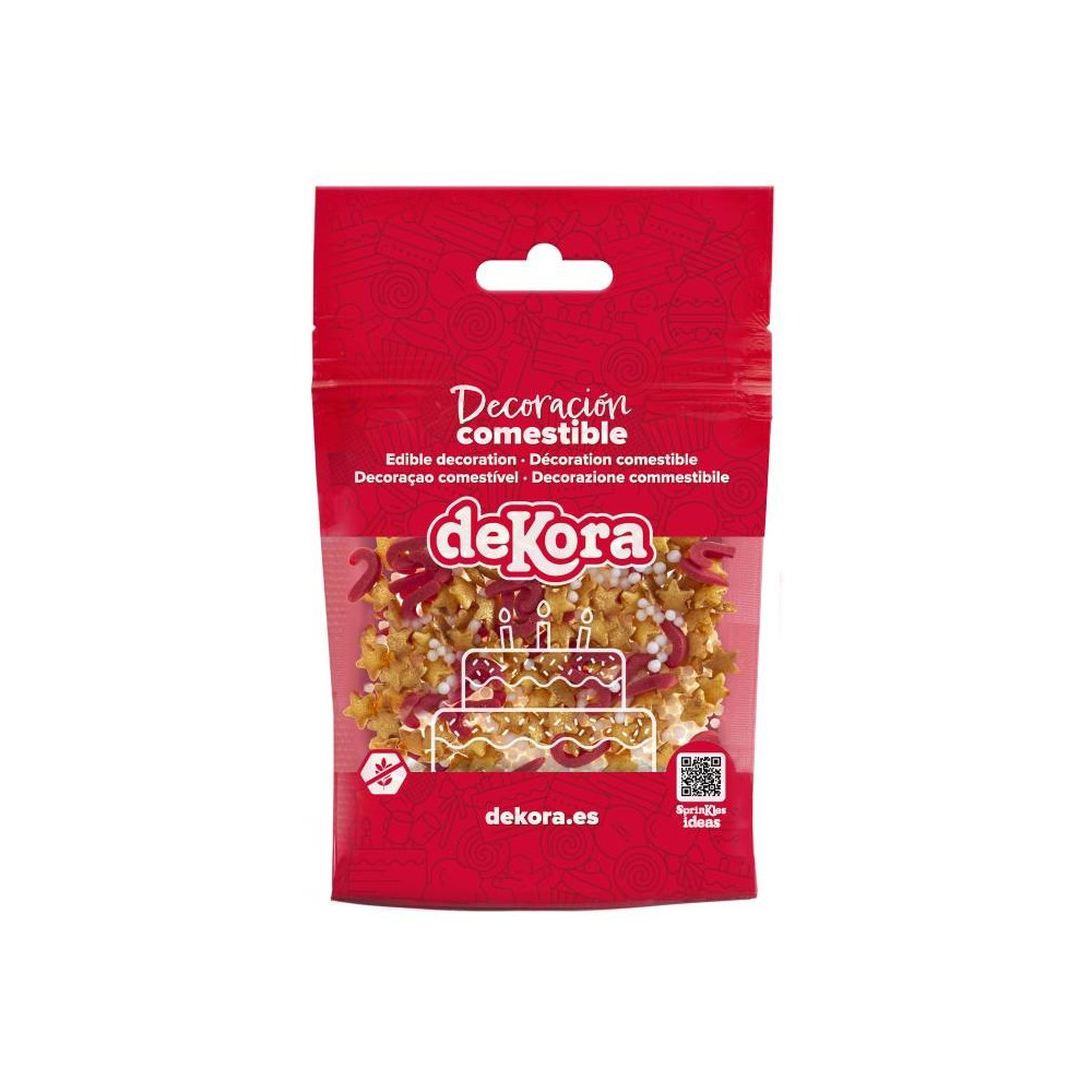 Vytvořte dezerty s vánoční či slavnostní atmosférou pomocí jedlého zdobení Dekora — zlatých hvězdiček a červených hůlek. Tato kombinace pěkně vynikne na dortech, cupcakách, cukroví i dalších dezertech.