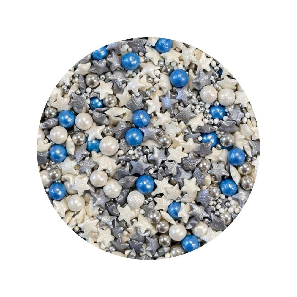Cukrové zdobení bílé, stříbrné a modré Star Galaxy 50 g jsou tradiční cukrová dekorace ve tvaru malých srdíček, ideální pro sladké zdobení.