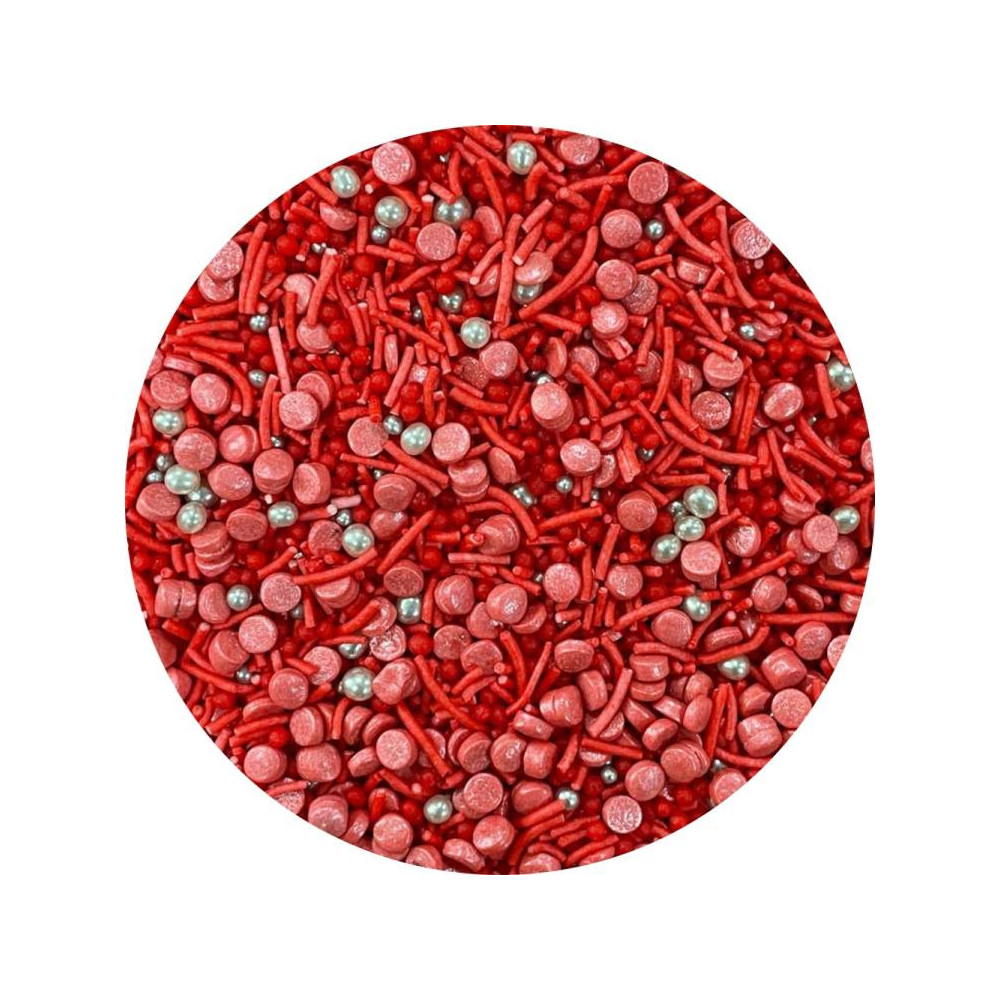 Cukrové zdobení stříbrné a červené Red Cocktail 50 g jsou tradiční cukrová dekorace ve tvaru malých srdíček, ideální pro sladké zdobení.