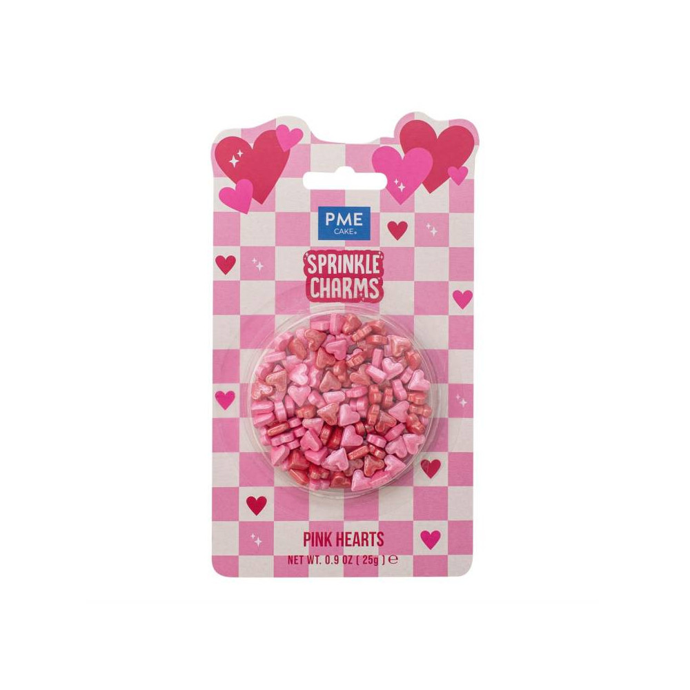 Cukrová srdíčka PME růžová a červená (25 g) jsou jedlé dekorace, které do dortu přidají lásku na první pohled.