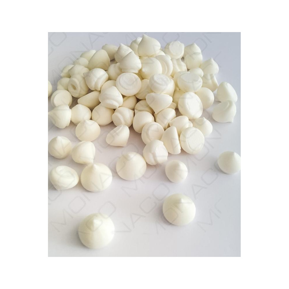 Cukrový posyp ve tvaru sněhových pusinek v bílé barvě.