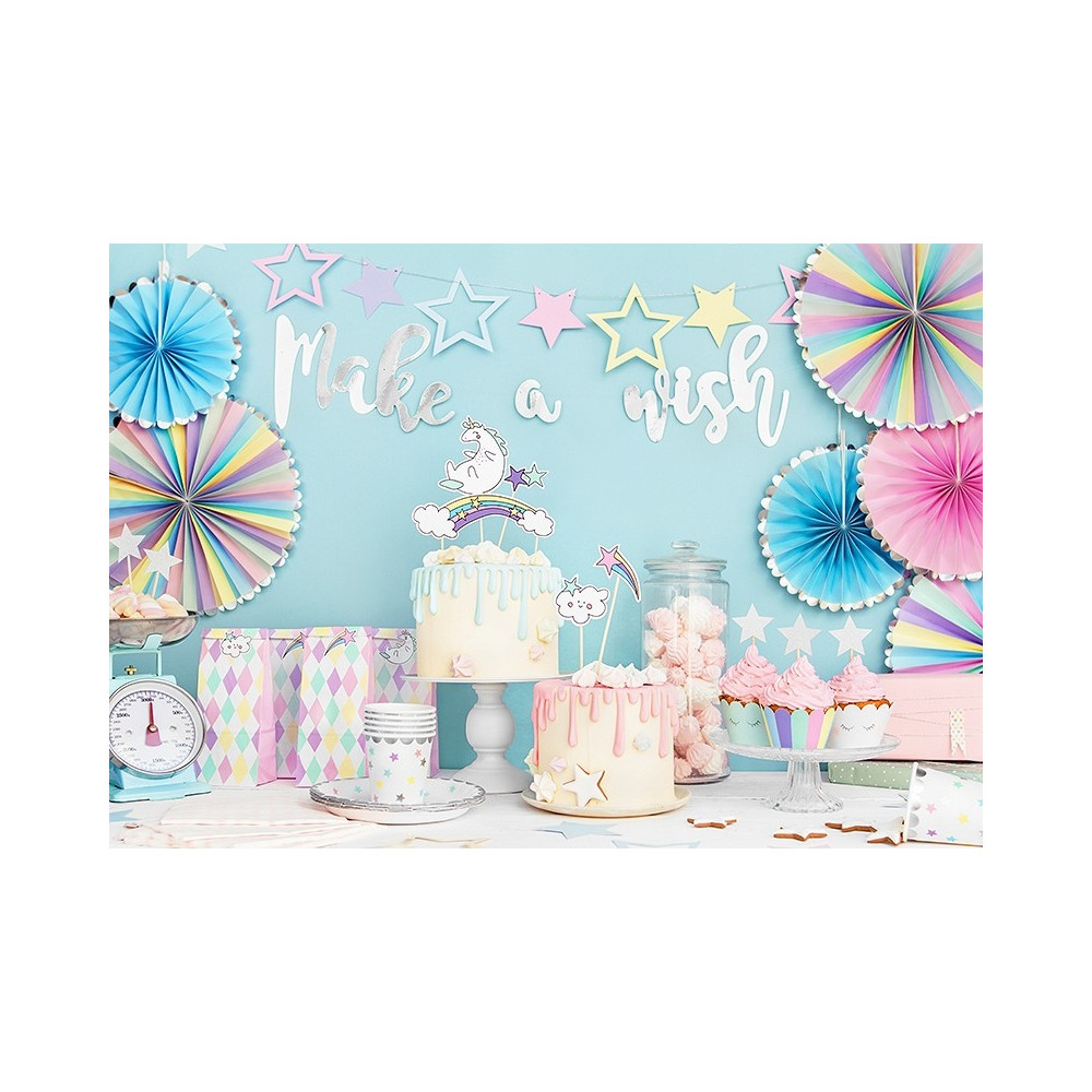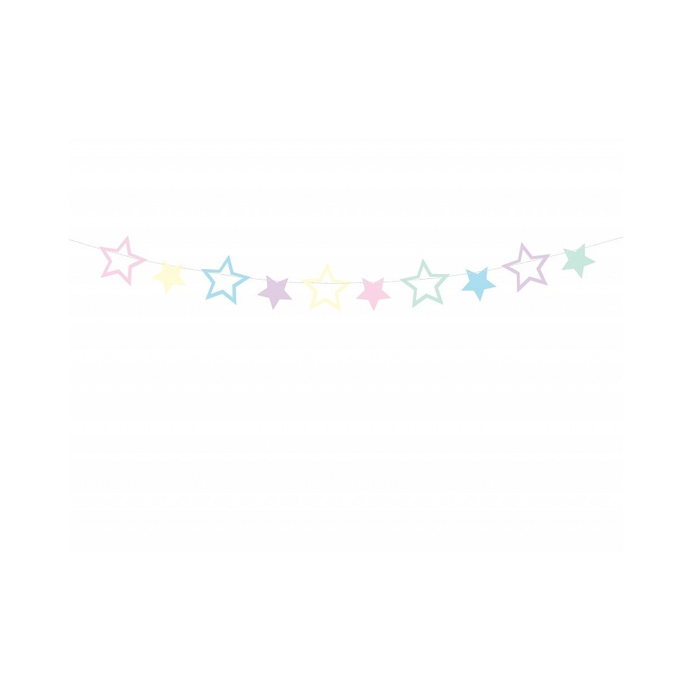 Girlanda složená z deseti barevných hvězdiček, v designu unicorn, v pastelových barvách.
