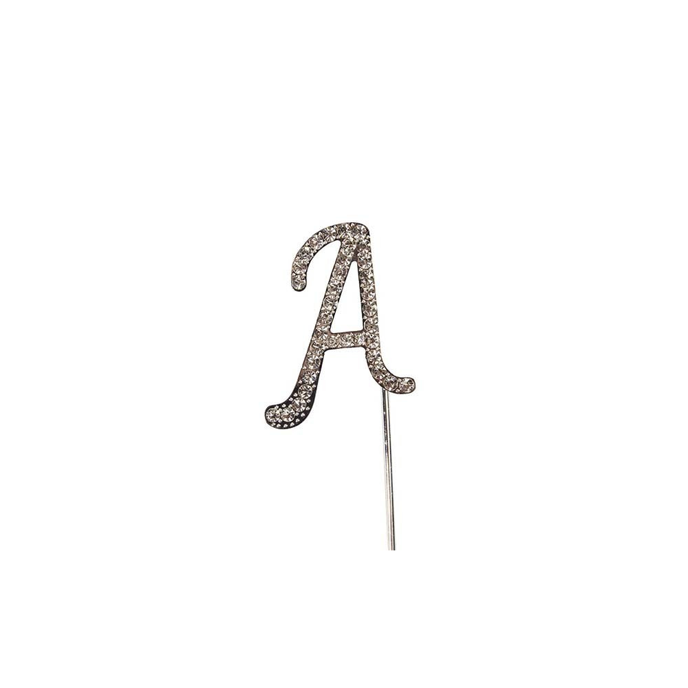 Luxusní a elegantní zápich ve tvaru písmene A - zdobený třpytivými kamínky. Skvělá volba pro výjimečné příležitosti – narozeniny, svatby, výročí nebo jiné slavnosti. Vhodný pro sestavení jména, iniciál nebo nápisu na dortu.