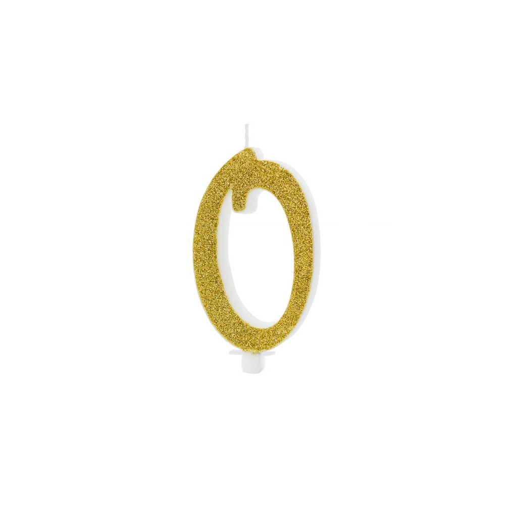 Velmi elegantní zlatá svíčka ve tvaru čísla 0, nesmí chybět na žádném narozeninovém dortu.