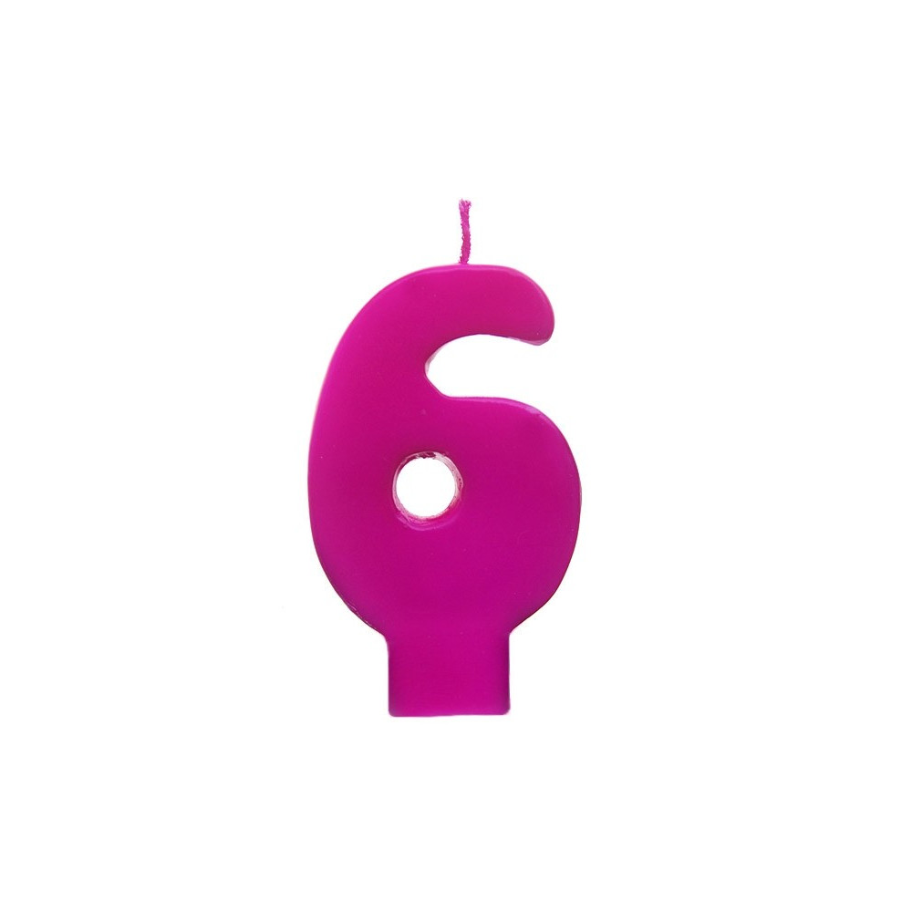 Svíčka narozeninová číslice 6 barva růžová, velikost 6,5 centimetrů.