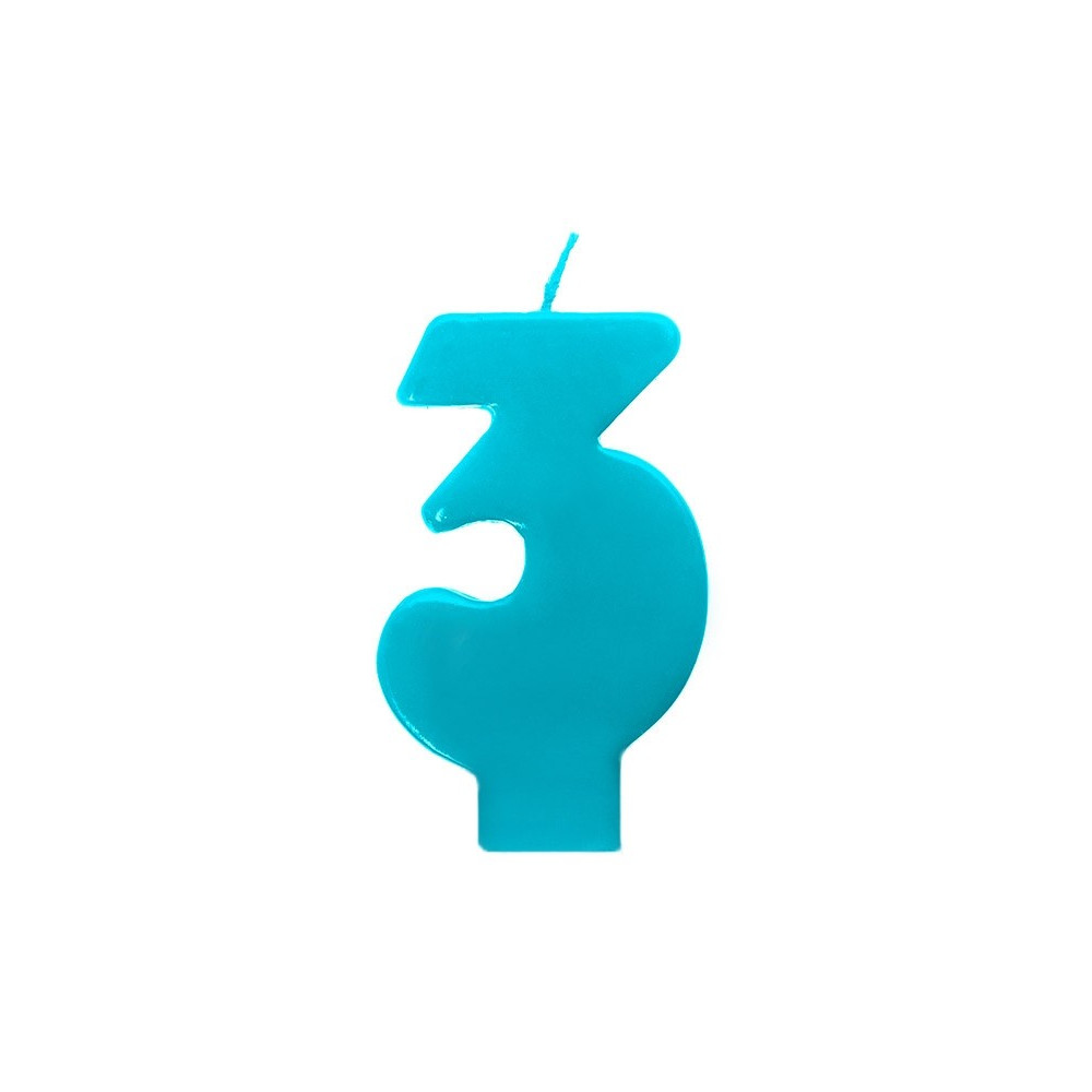 Svíčka narozeninová číslice 3 barva tyrkysová, velikost 6,5 centimetrů.