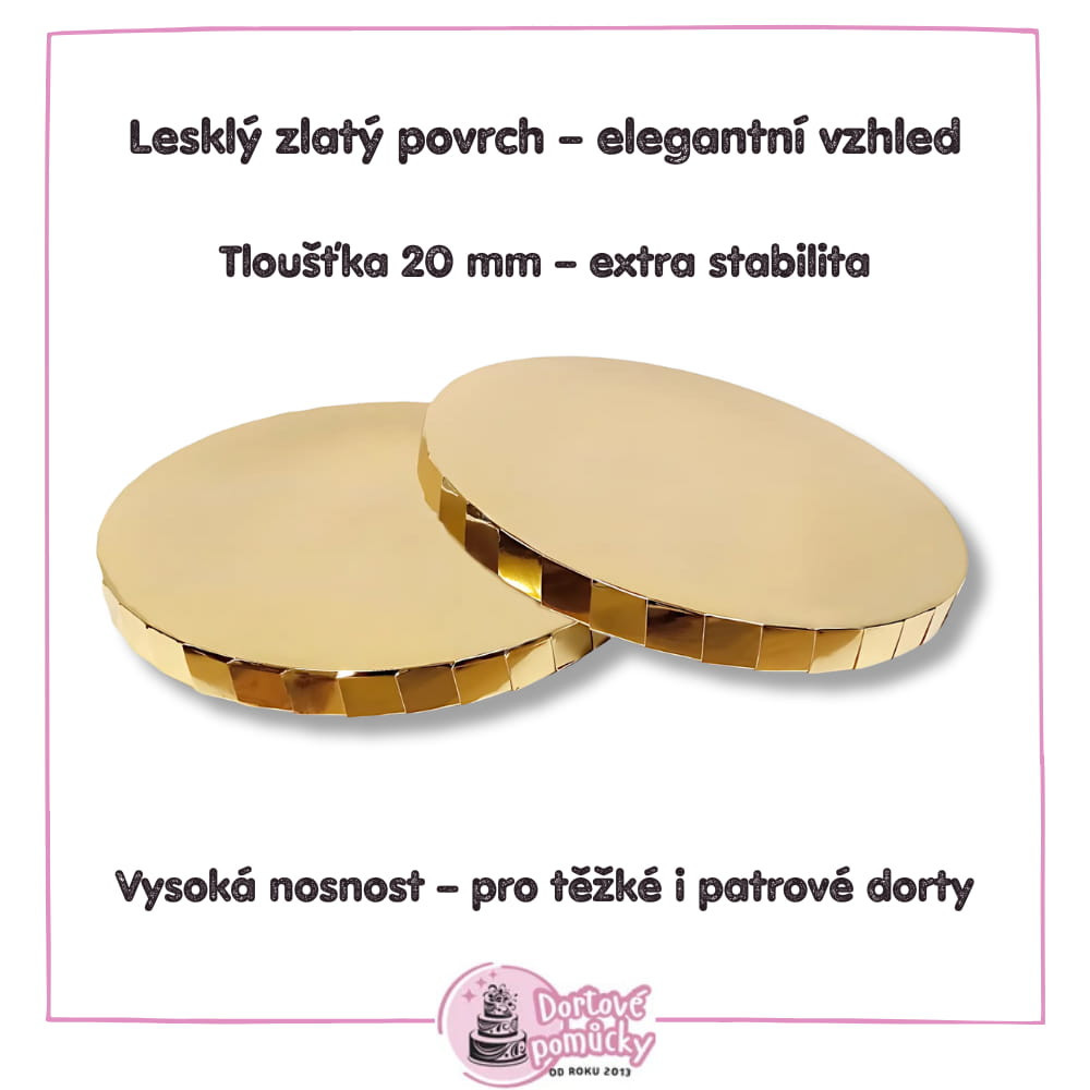Luxusní dortová podložka ze styroduru s lesklým zlatým povrchem z laminované fólie je ideální volbou pro elegantní prezentaci dortů.