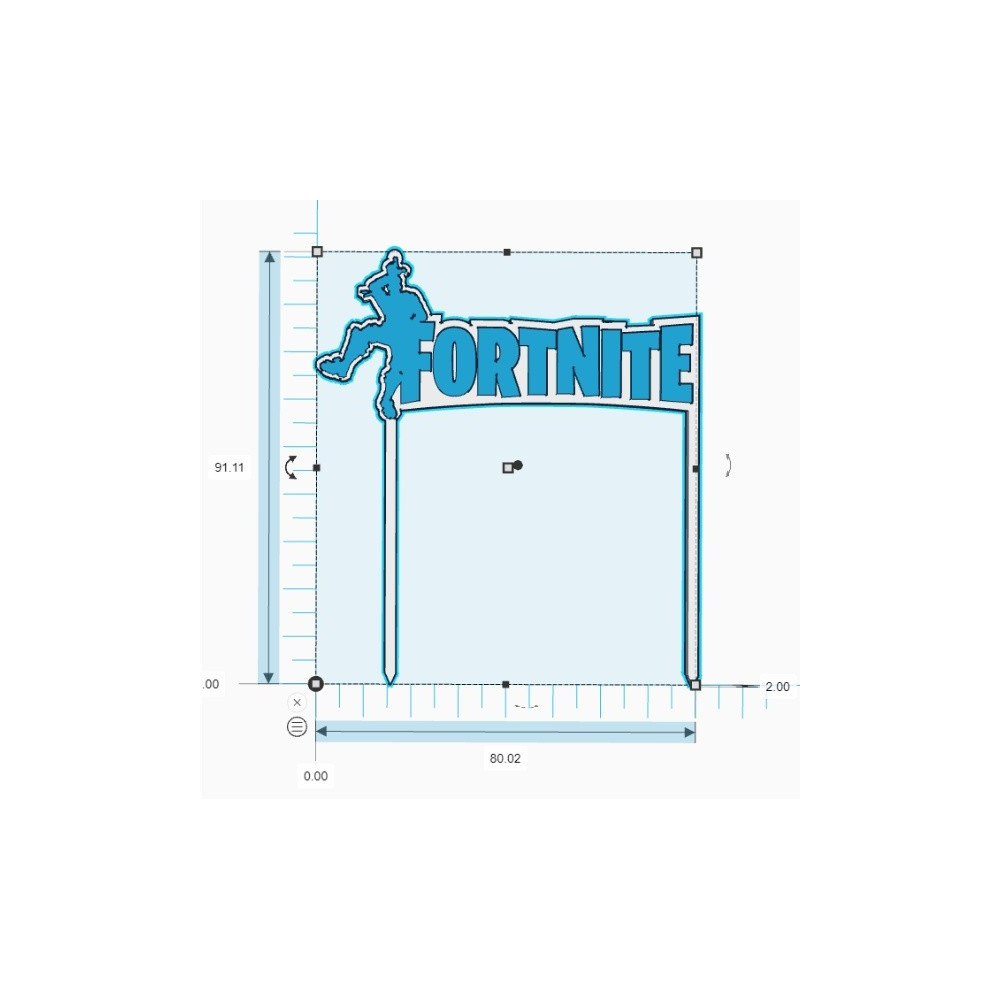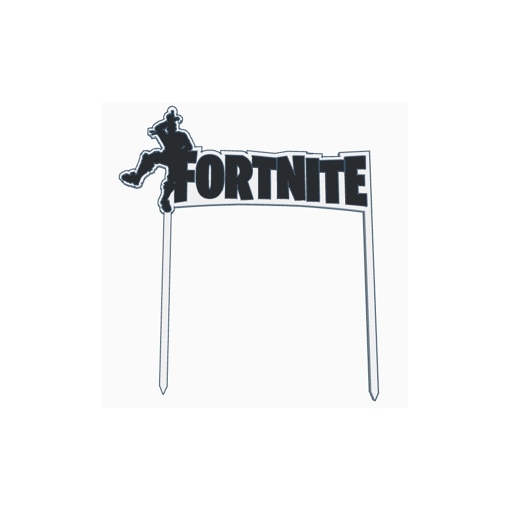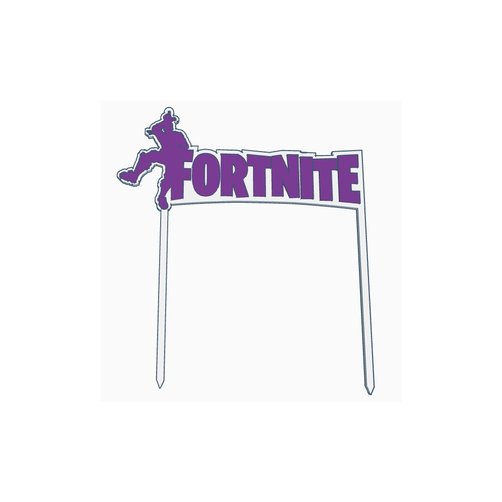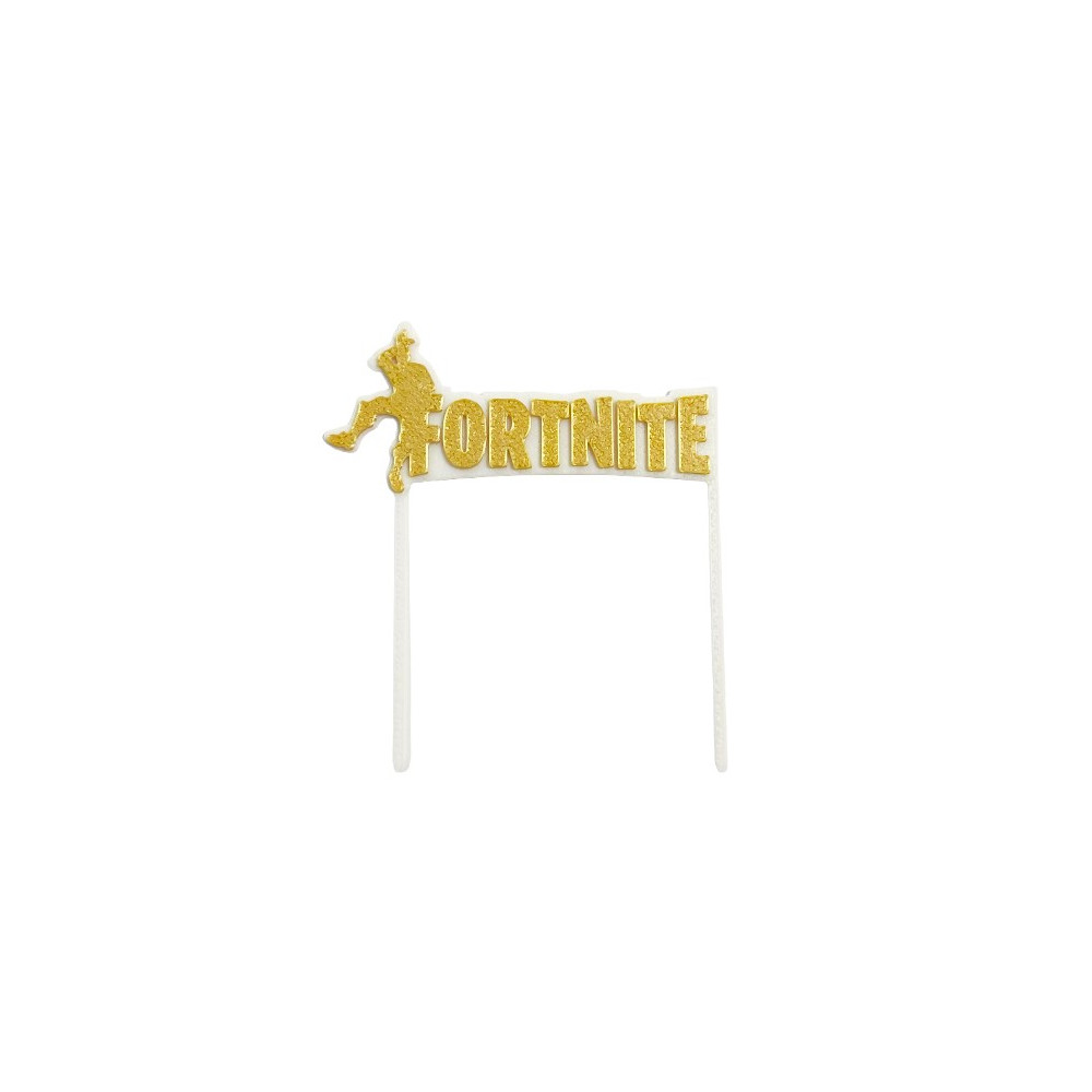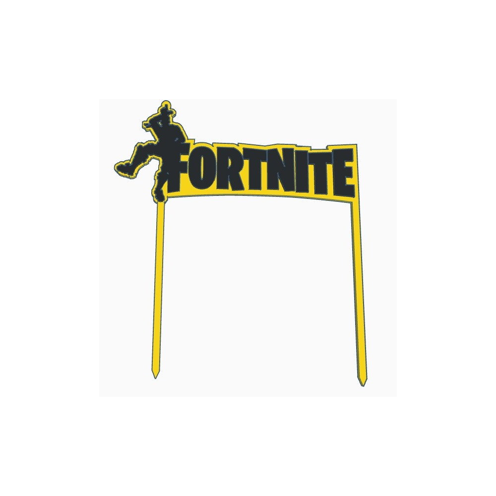 Dortový zápich s nápisem FORTNITE a postavičkou.