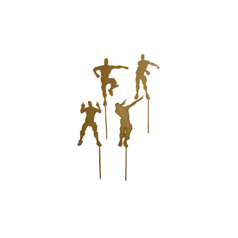 Sada 4 dortových zápichů s tančícími siluetami postaviček z hry FORTNITE.