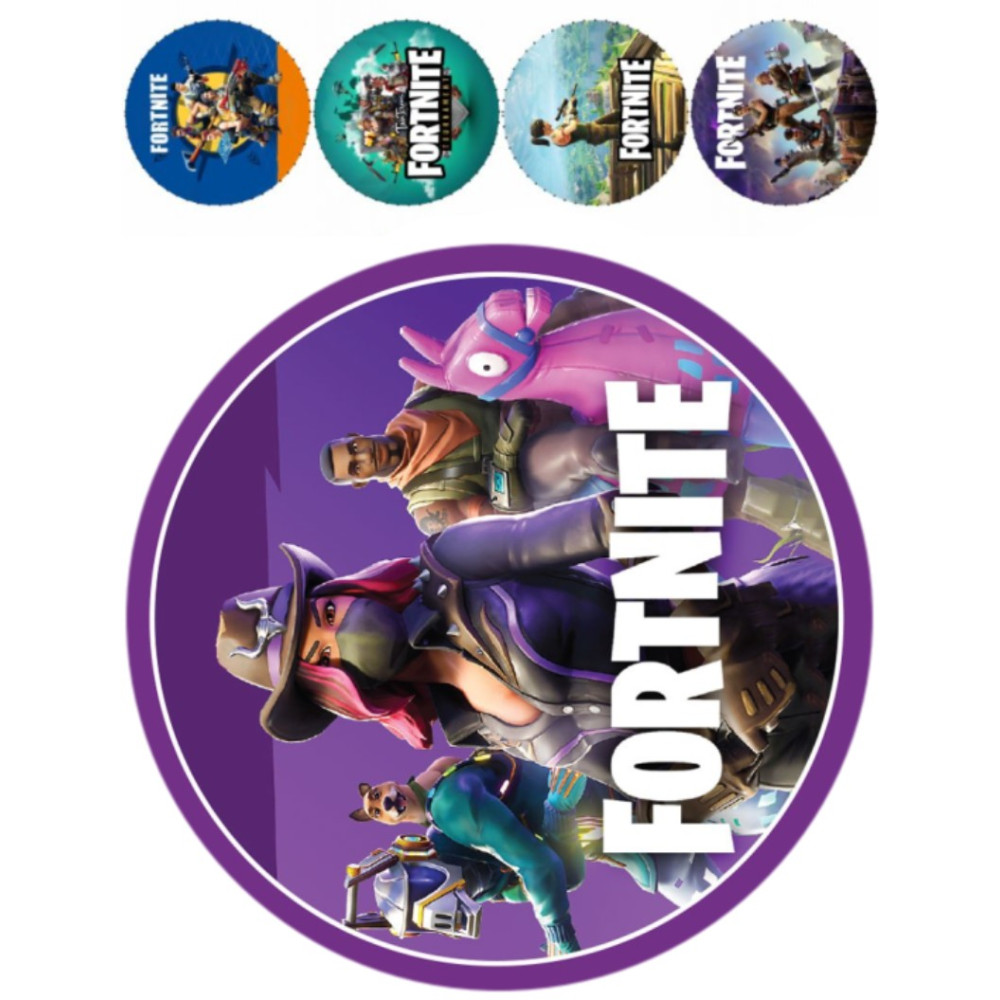 Dortový zápich s nápisem FORTNITE a postavičkou. V základu je vždy bílé pozadí a nápis ve vámi...