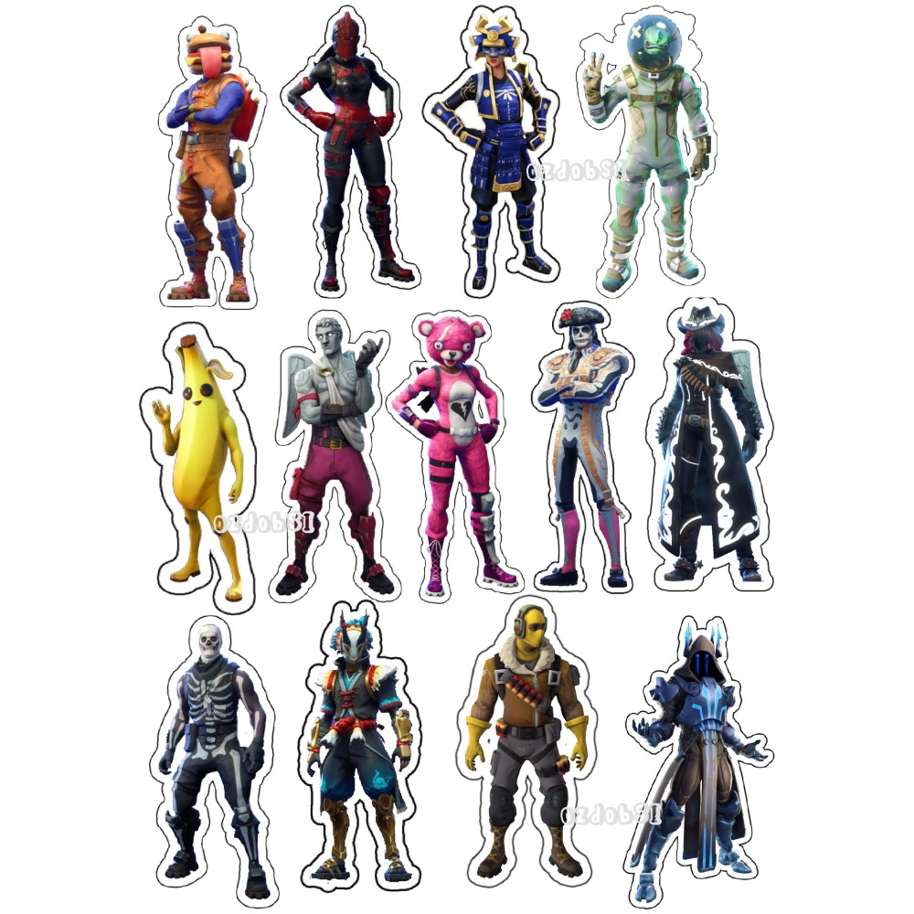 Dortový zápich s nápisem FORTNITE a postavičkou. V základu je vždy bílé pozadí a nápis ve vámi...