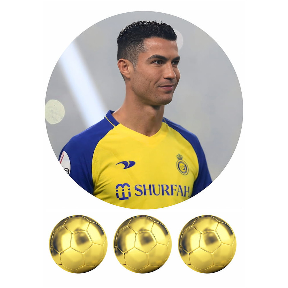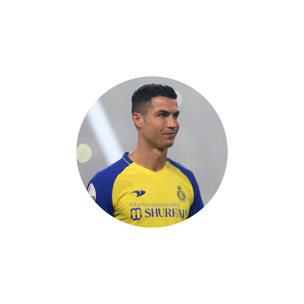 Jedlý obrázek Ronalda v barvách nového klubu Al Nassr s logem a podpisem.
