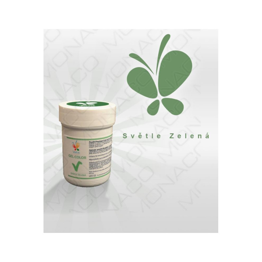 Potravinářská světle zelená barva ve formě gelu.Vhodná k barvení máslových krémů, bílkových polev, těst a modelovacích hmot. Barvy jsou vysoce koncentrované, doporučujeme pro malování potahovacích hmot přidat do barvy čistý alkohol. Pokud chceme barvu světlejší přidáme více alkoholu, nebo pro lepší krytí nakapeme pár kapek běloby.