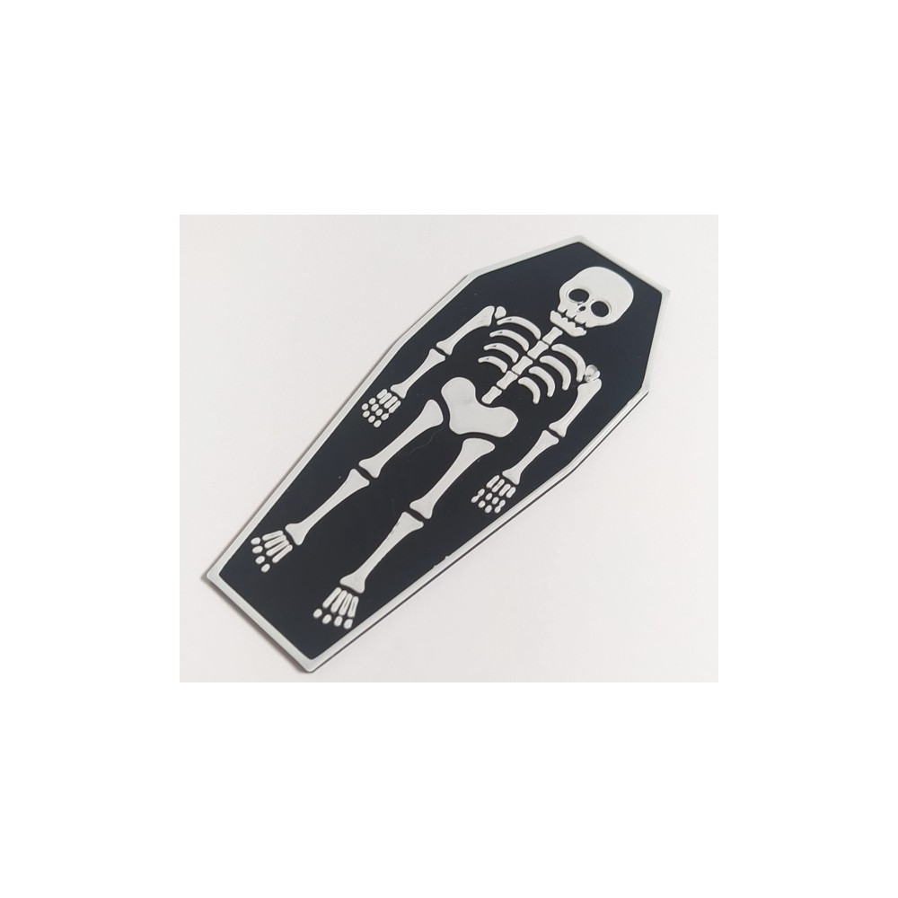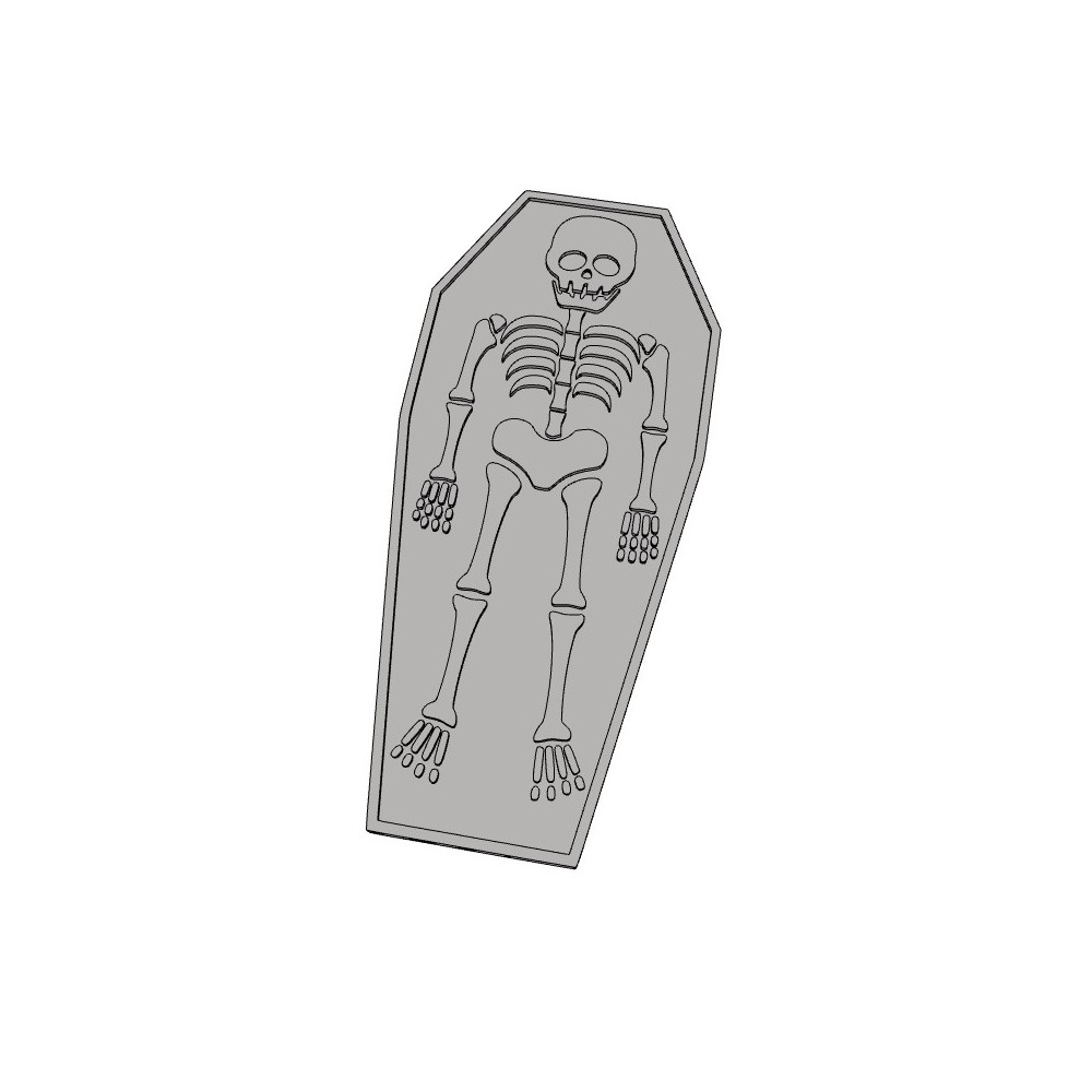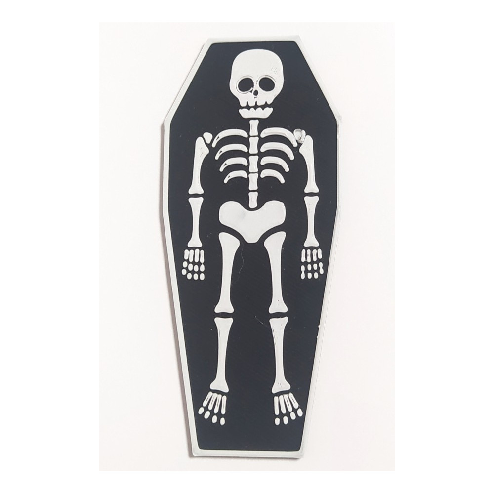 Barevný kostlivec v rakvi v provedení černé a bílé barvy.