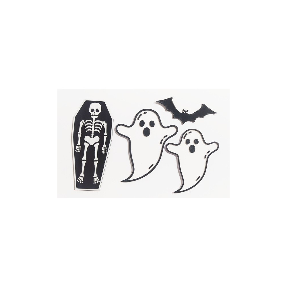 Sada Halloweenských dekorací v provedení černé a bílé barvy. Kostlivec: 90x38x1,6 mm Netopýr:...