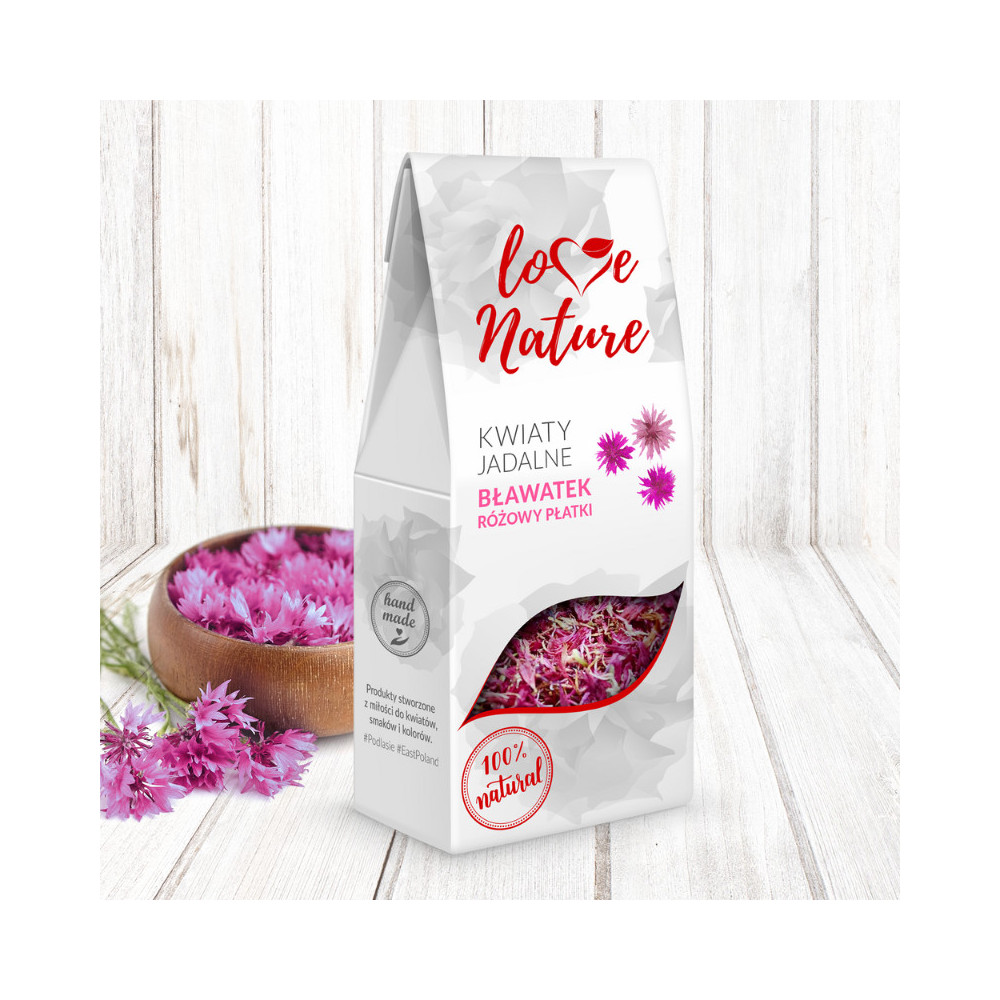 Plátky růžové chrpy Love Nature – jemné sušené okvětní lístky v atraktivních růžových tónech. 100% přírodní dekorace bez barviv a aromat.