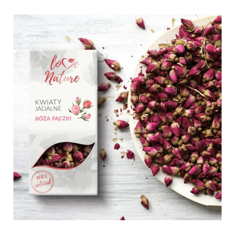 Poupata růže Love Nature promění každý dezert v romantickou záležitost. 100% sušené poupata růže bez barviv a aromat.