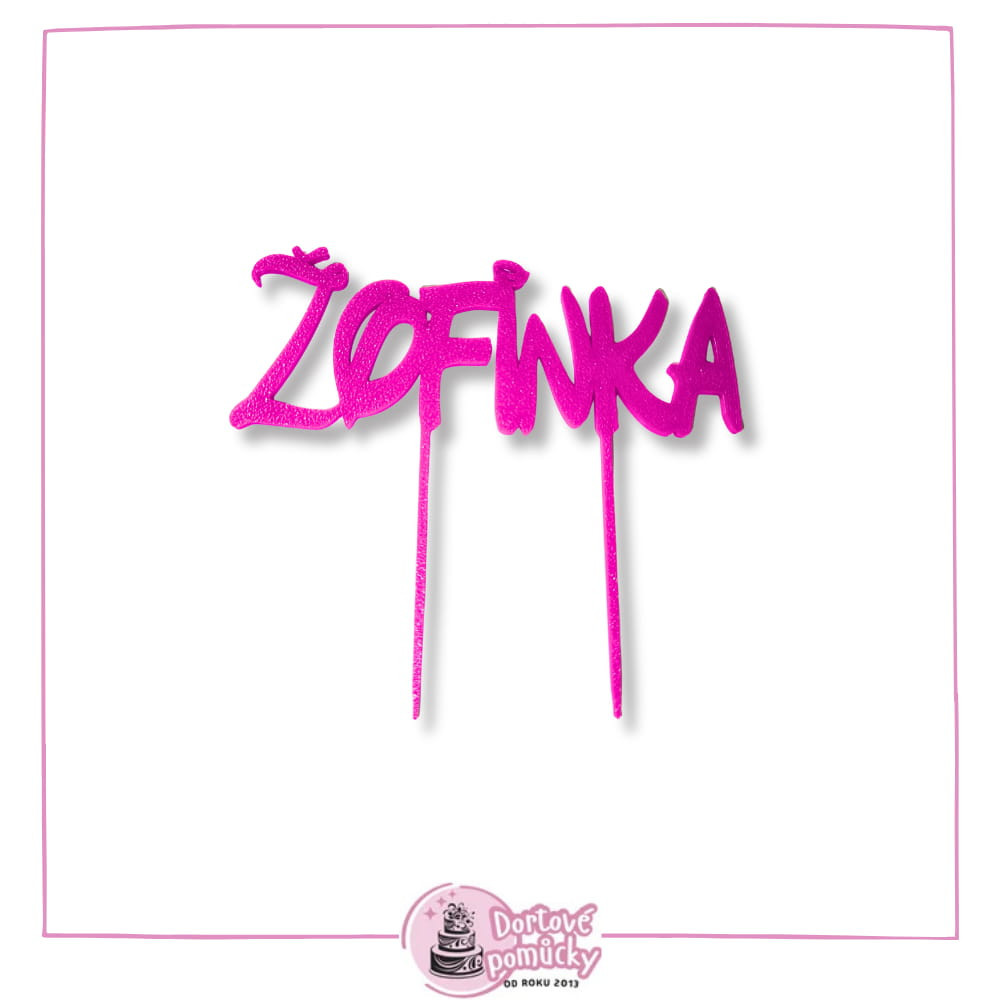 Plastový zápich s jménem v oblíbeném písmu č. 3 je originální 3D dekorace na dort, která ozdobí narozeniny, svatbu i křtiny. Vyberte si libovolné jméno nebo slovo – zápich vám vyrobíme přesně podle vašeho zadání.