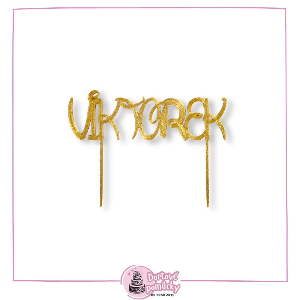 Plastový zápich s jménem dle vašeho výběru v elegantním písmu č. 3. Skvělý doplněk na dort, který zaujme na první pohled!