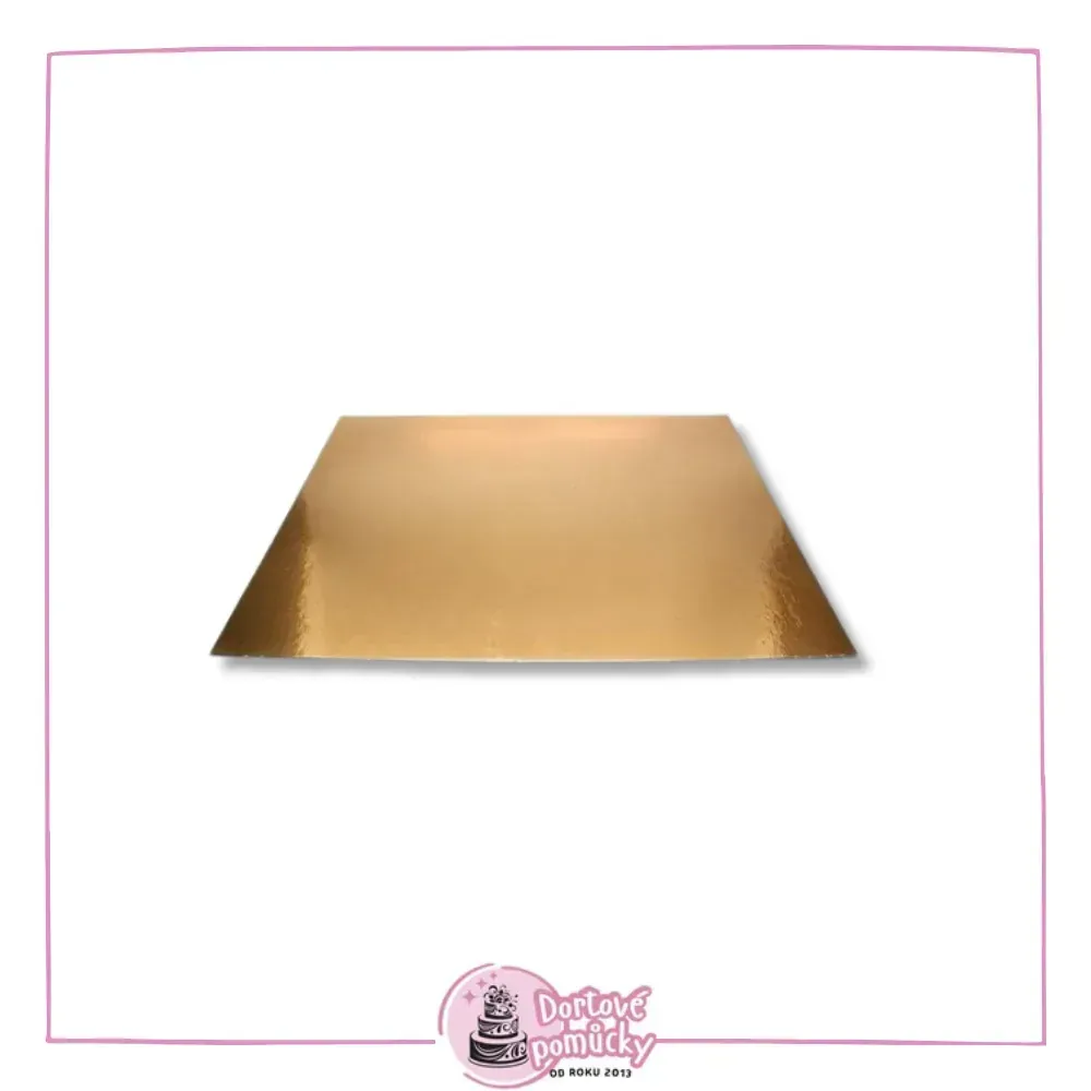 Kartonová pevná podložka se zlatou folií na povrchu.