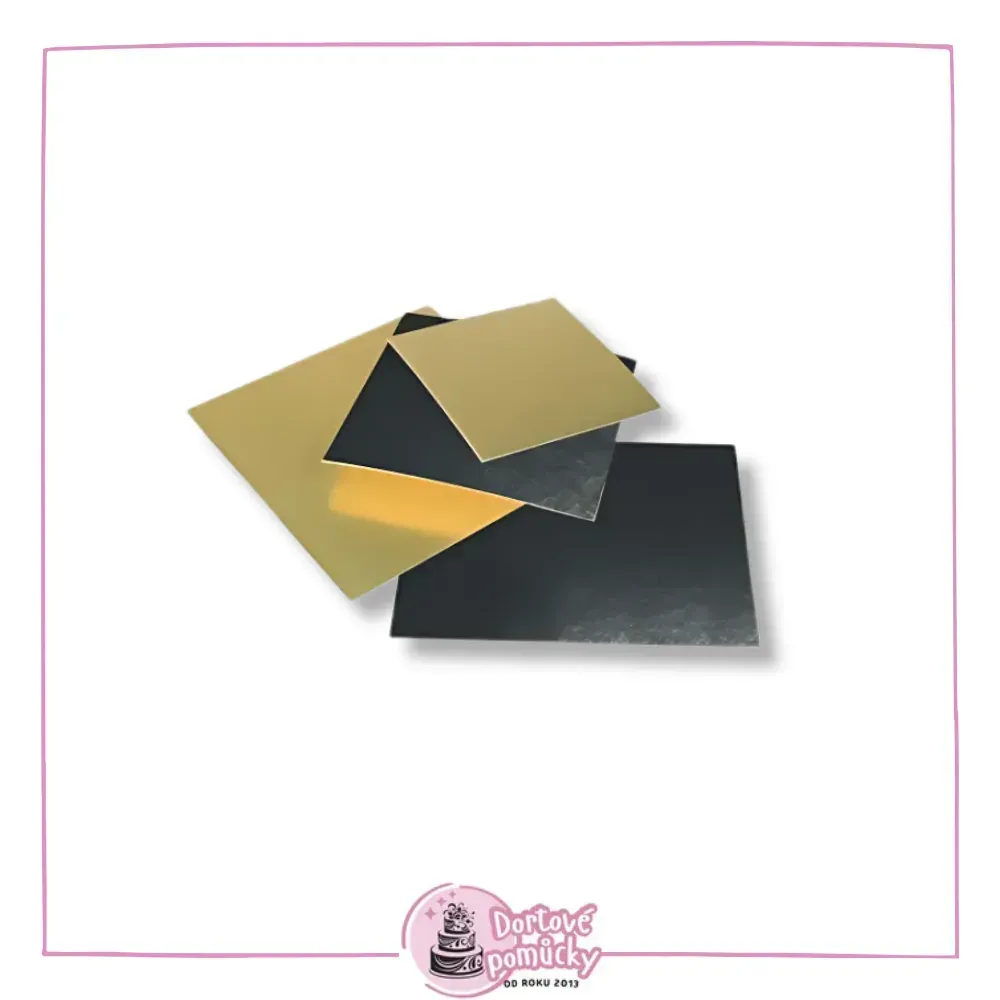 Velmi pevná lepenková podložka s rovným okrajem, potažená zlatou a černou fólií odolnou proti vlhku a mastnotě.