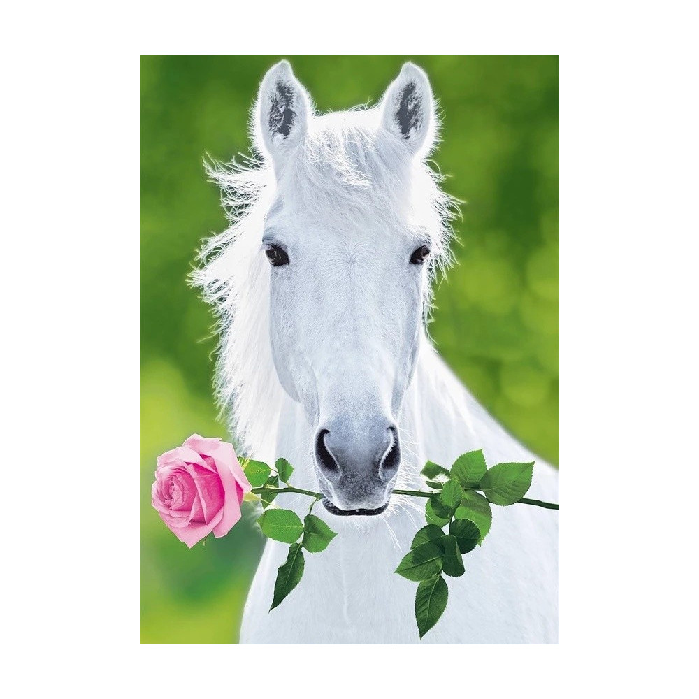 Bílý kůň s růží – jedlý tisk A přinese na tvůj dort kouzlo a něžnost.