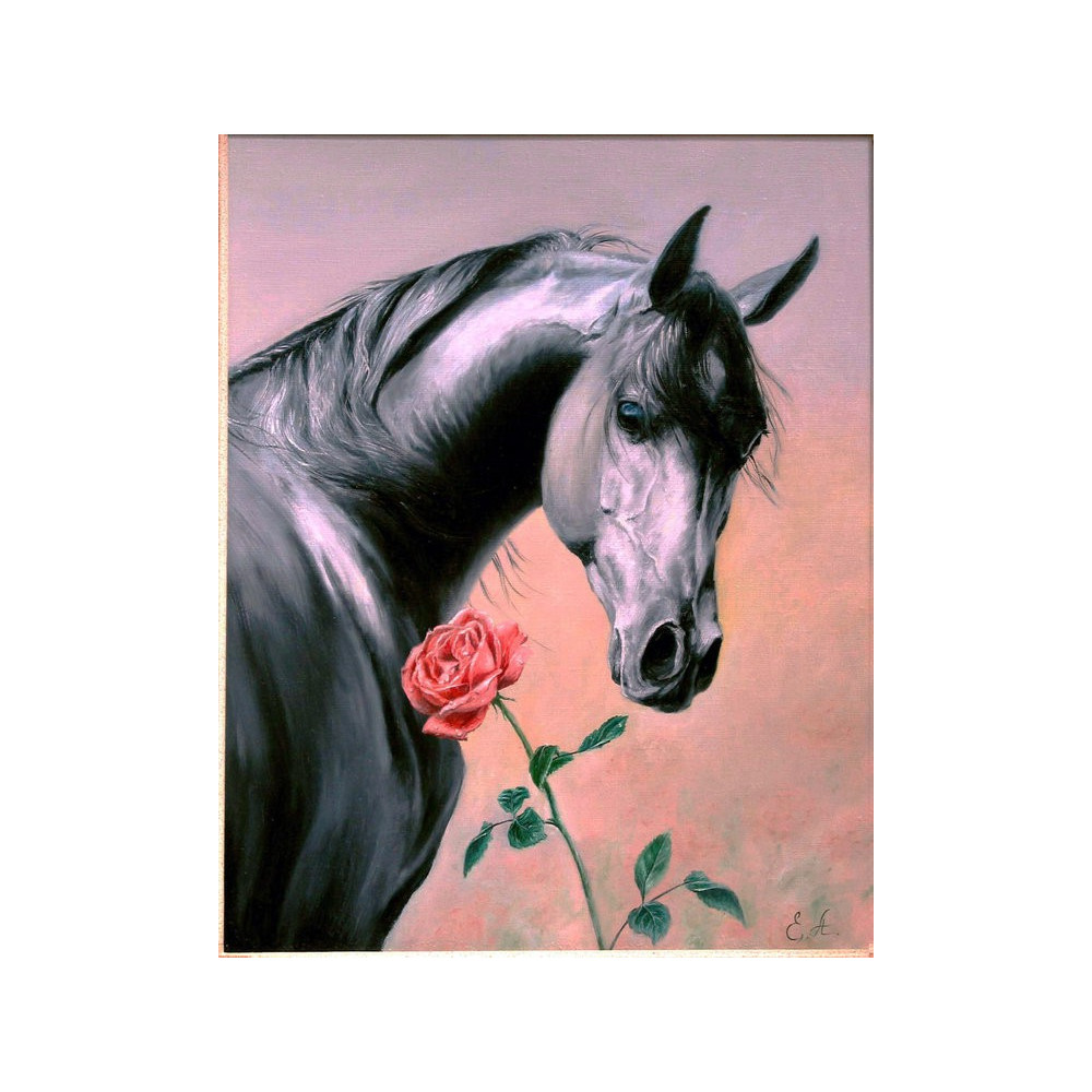 Černý kůň s růží – jedlý tisk A přinese na tvůj dort kouzlo a něžnost.