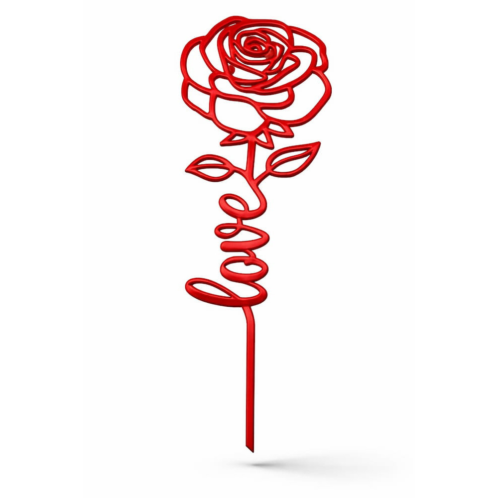 Plastový zápich Růže „Love“ jako rychlá dekorace na dort pro Valentýna, výročí i romantickou oslavu.