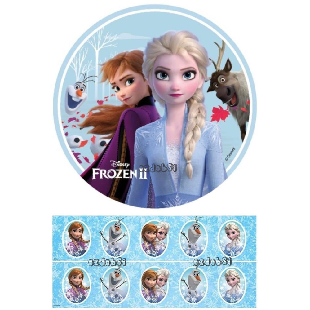 Obsahuje jedlý papír s motivem Ledového království.