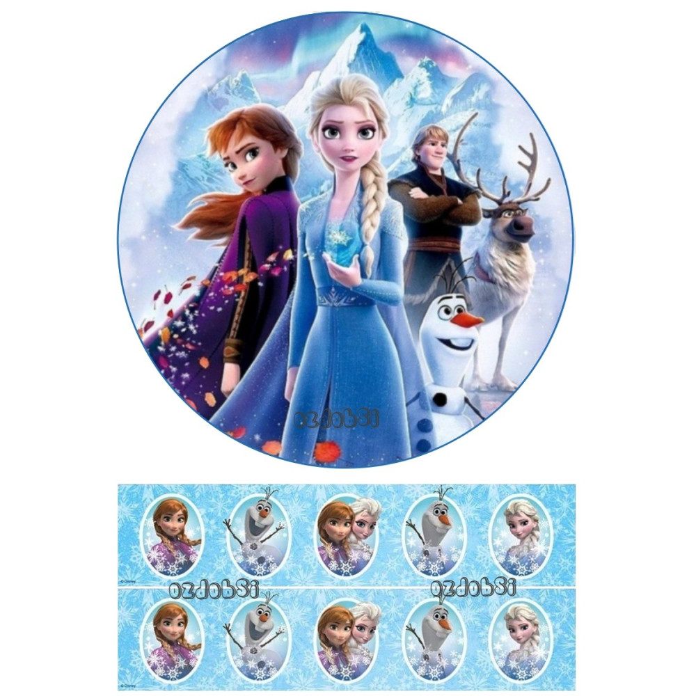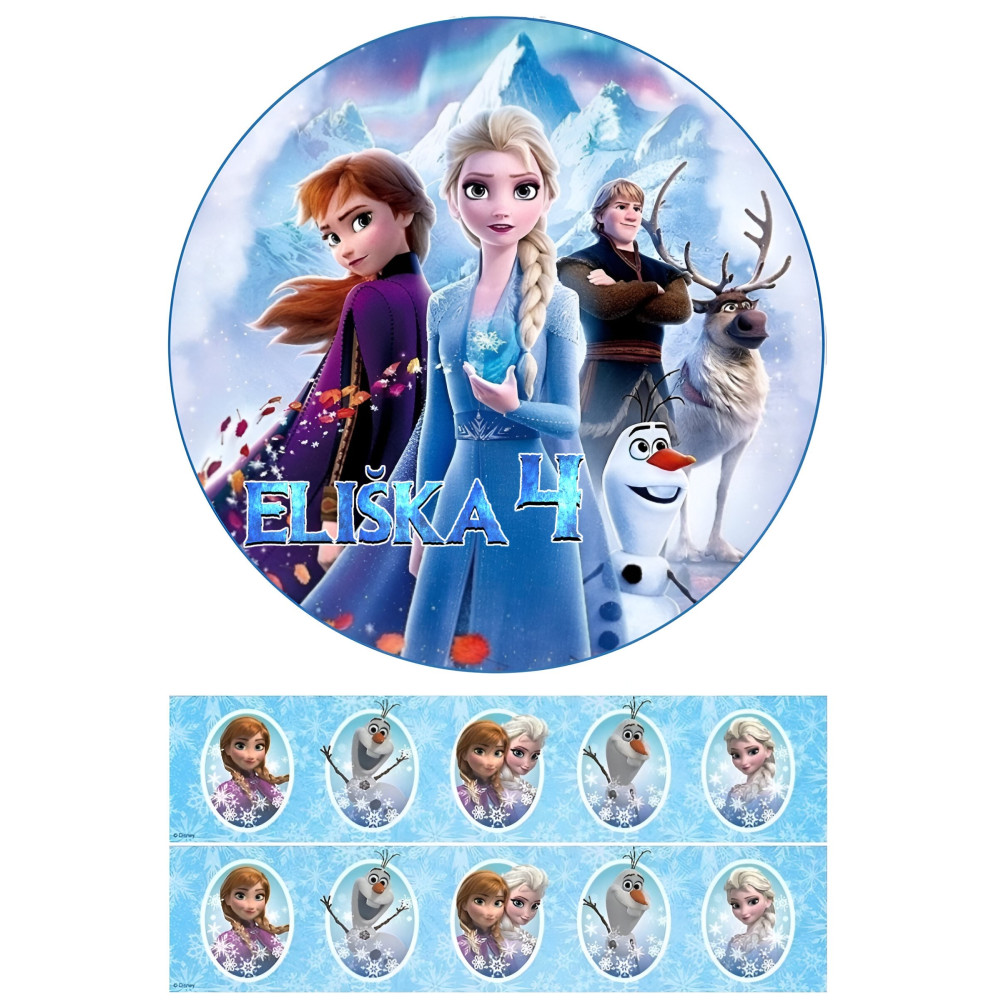 Obsahuje jedlý papír s motivem Ledového království.