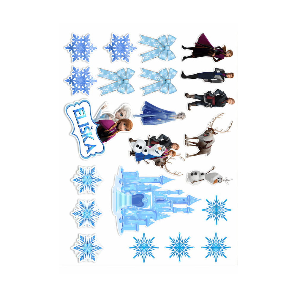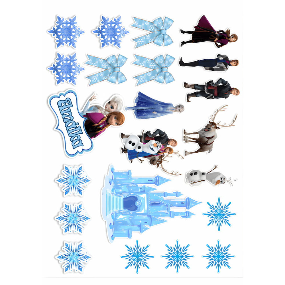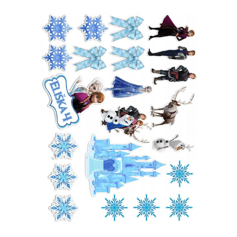 Obsahuje jedlý papír s motivem Ledového království.