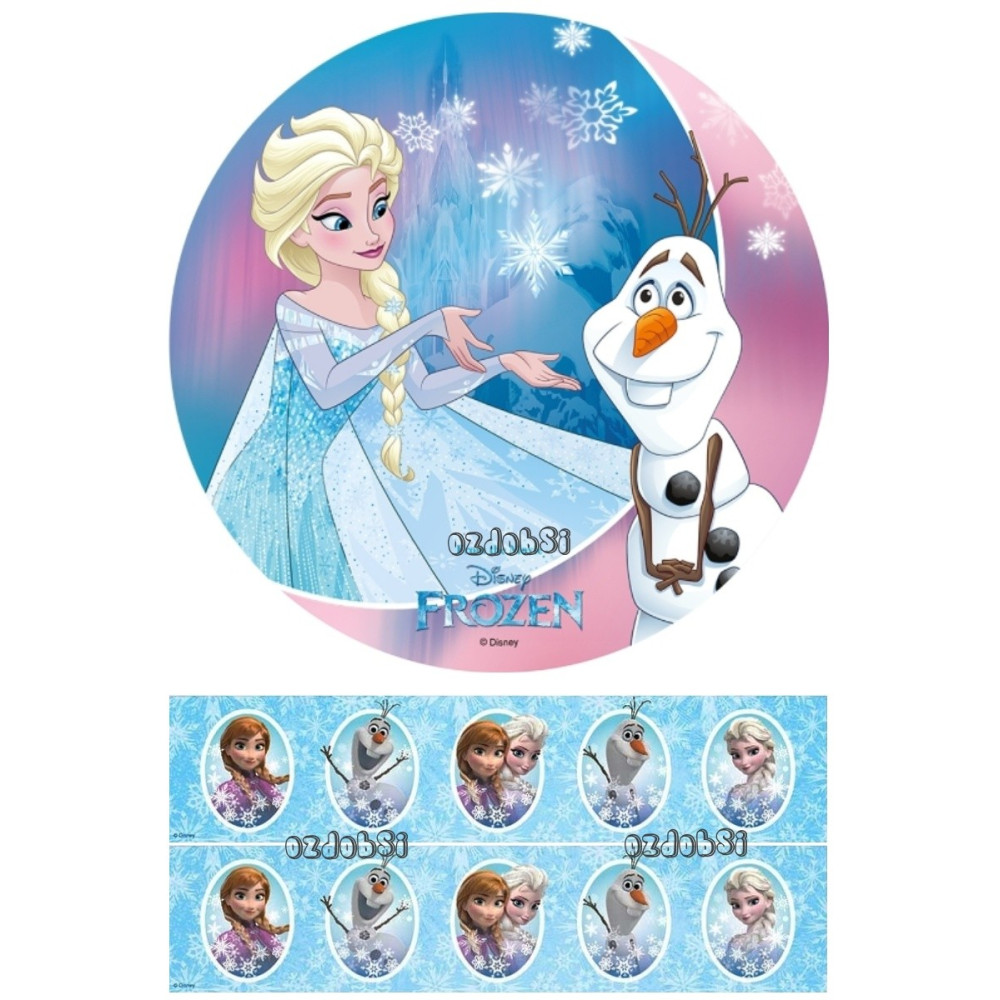 Obsahuje jedlý papír s motivem Ledového království.