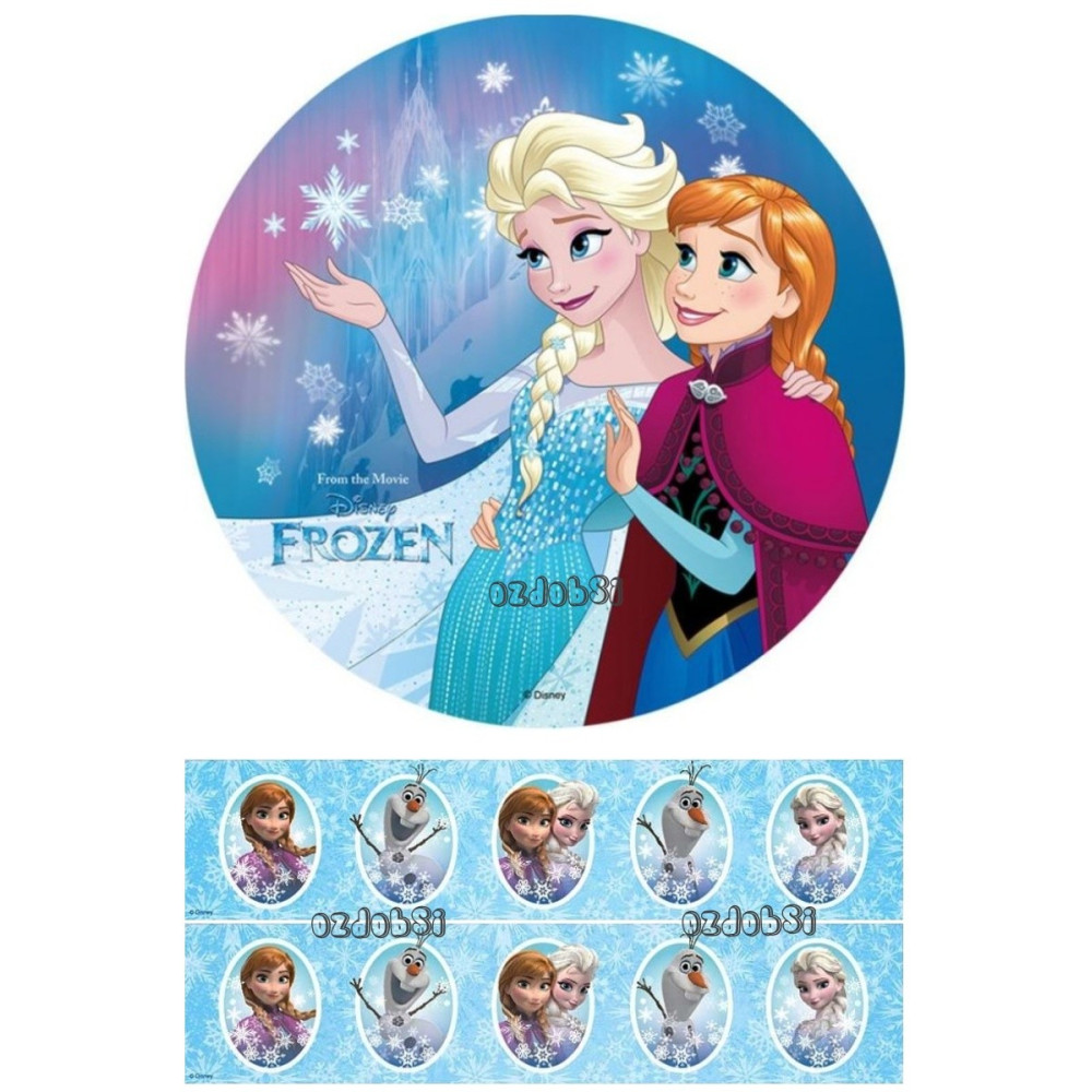 Obsahuje jedlý papír s motivem Ledového království.